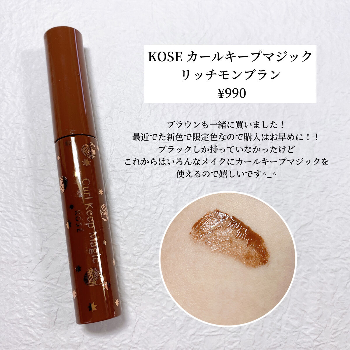 マスカラ下地、トップコート、マスカラの1本3役! 濃すぎない抜け感のあるクリアブラックカラーで透明の繊維が入ってます しっかりまつ毛が伸びるのにやりすぎ感が出ず自然で名前の通り、カールが持続されます! カールもロングも叶うかつ滲みにくいすごくオススメのマスカラです!!