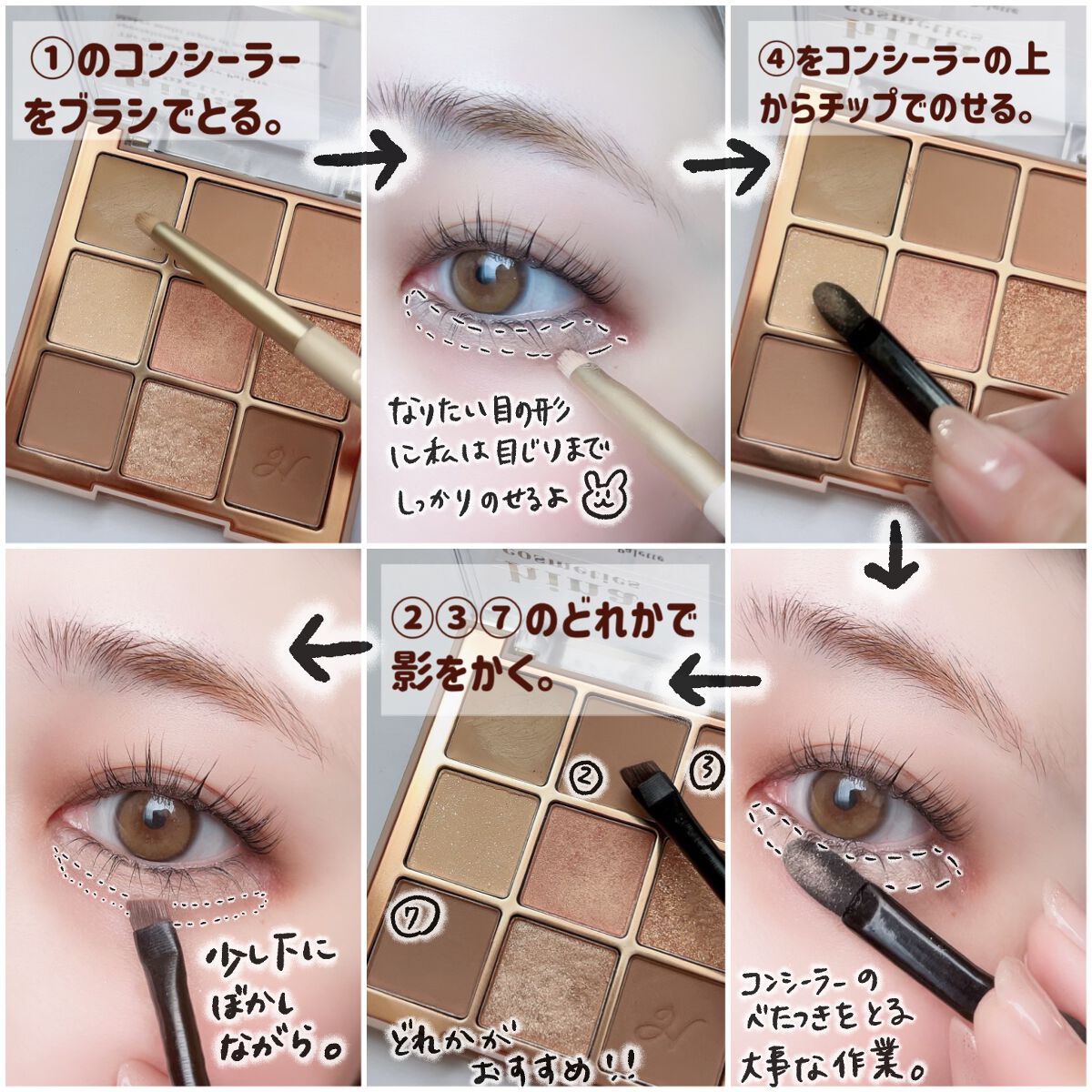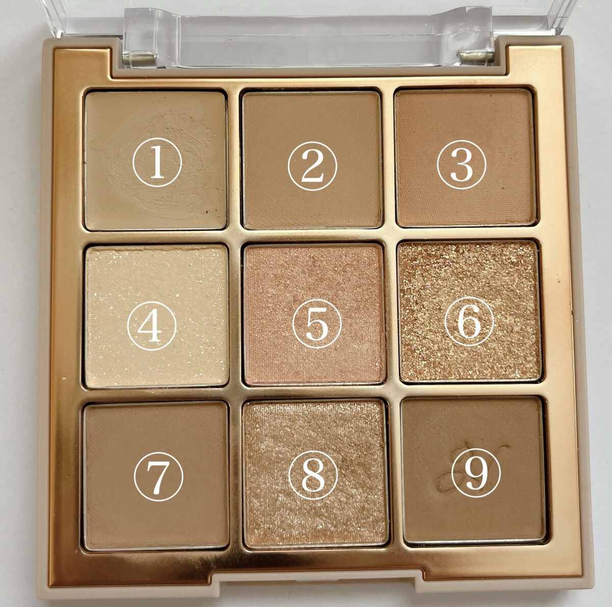 - 涙袋用コンシーラー入りの9色アイシャドウパレット。涙袋用コンシーラーや涙袋の影カラー、涙袋を立体的にみせるハイピグメントのラメやハイライターが入った9色パレットです。これ1つで様々なニュアンスの「涙袋メイク」や「下まぶたメイク」を楽しめます。