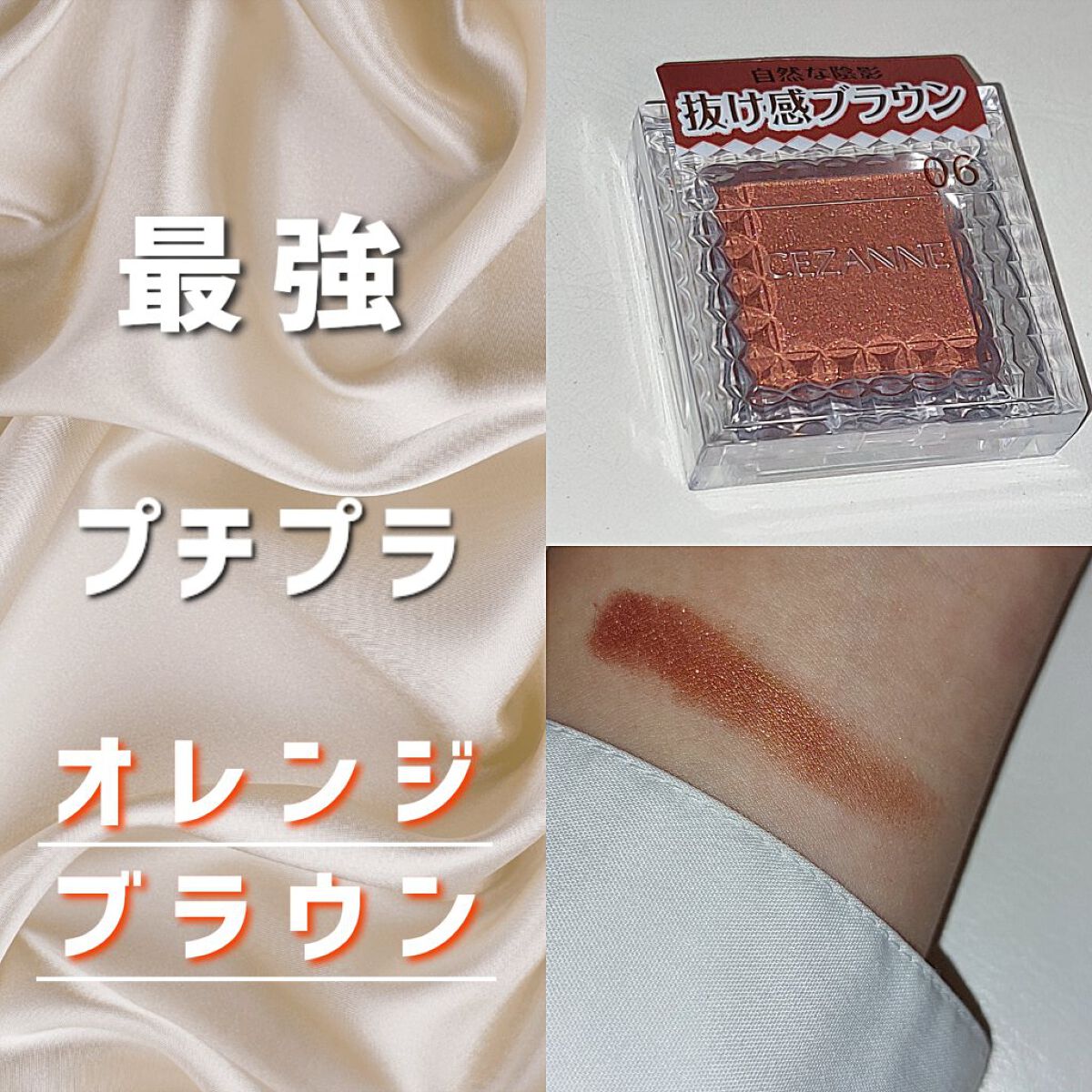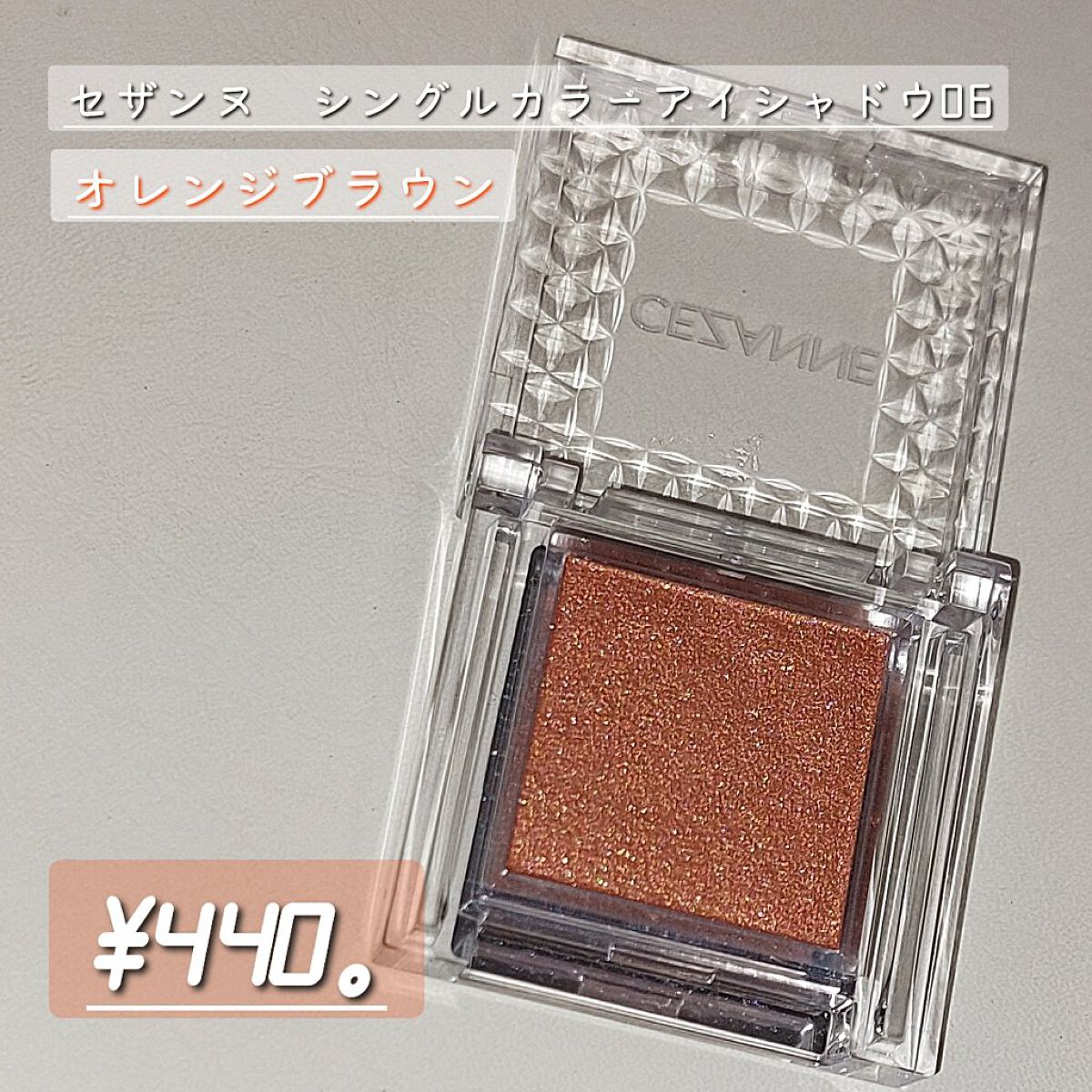 CEZANNEシングルカラーアイシャドウ【使った商品】06オレンジブラウン【商品の特徴】¥440円(税込)1g5種の保湿成分配合微粒子のローリング効果【使用感】パウダリーさとしっとり感を兼ね備えた単色アイシャドウパールが煌めきが大変に美しく光...