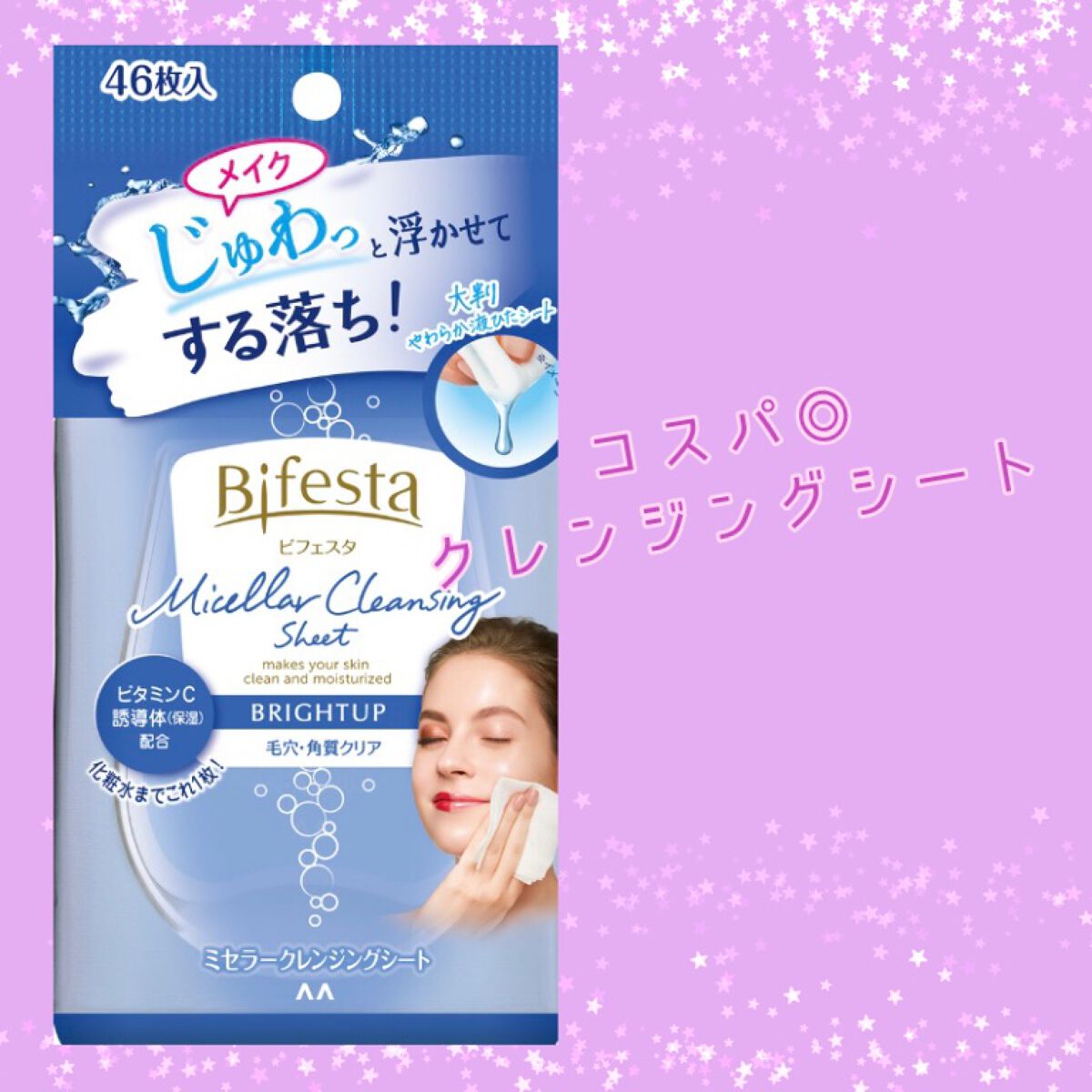 ビフェスタミセラークレンジングシートブライトアップ46枚+4枚疲れてクレンジングする体力もない時や暑い季節で帰宅後すぐにとりあえず落としたい!そんな時に便利なクレンジングシート◎昔はビフェスタの水クレンジングとかよく使ってたけど久々に購入しま...