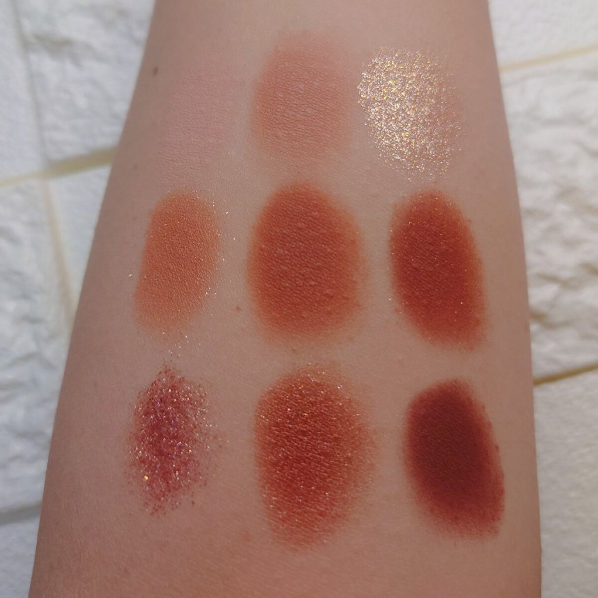 奥ゆかしいチョコレートブラウンムードを詰め込んだアイシャドウパレット🧸 色味はもちろん、アイシャドウが立体的になっていて、本物のチョコレートみたいな、見た目からして可愛い❣️ マットからラメ、グリッターまでバリエーション豊富な9色で、思いのままにアイメイクができる万能パレット🐰
