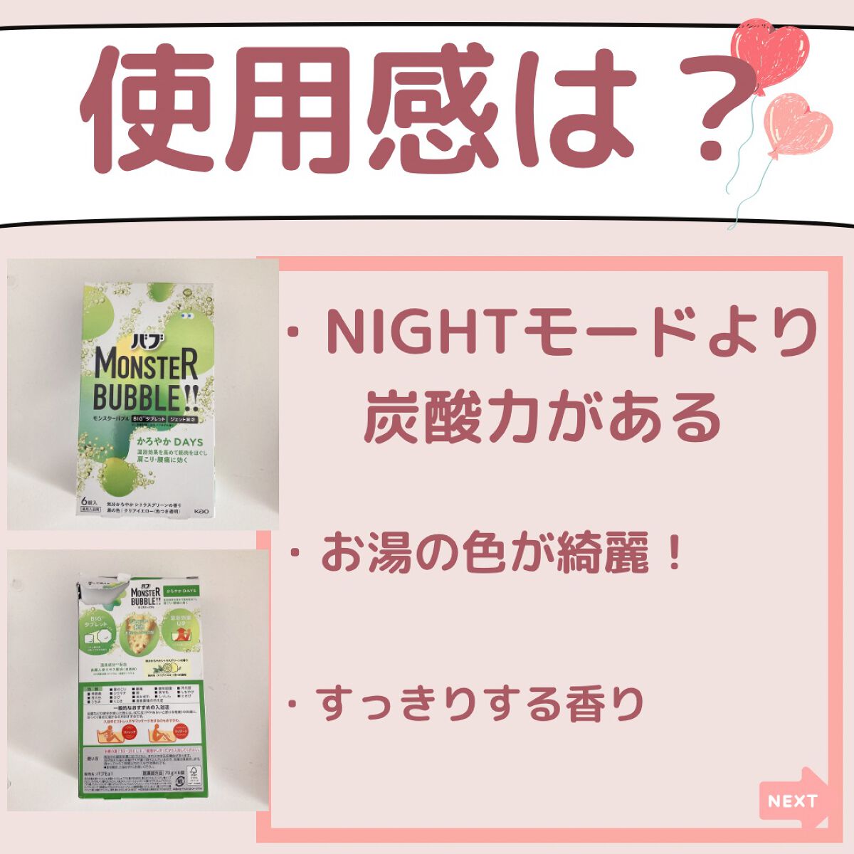 *・゜゜・*:.。..。.:*・*:゜・*:.。..。.:*花王さまからいただきました♪🛁✨おうちのお風呂が特別空間に✨\バブモンスターバブル かろやかDAYS/シャキッと軽快浴♪モンスターバブルならではの強炭酸の温浴効果で頑張った身体をスッ...