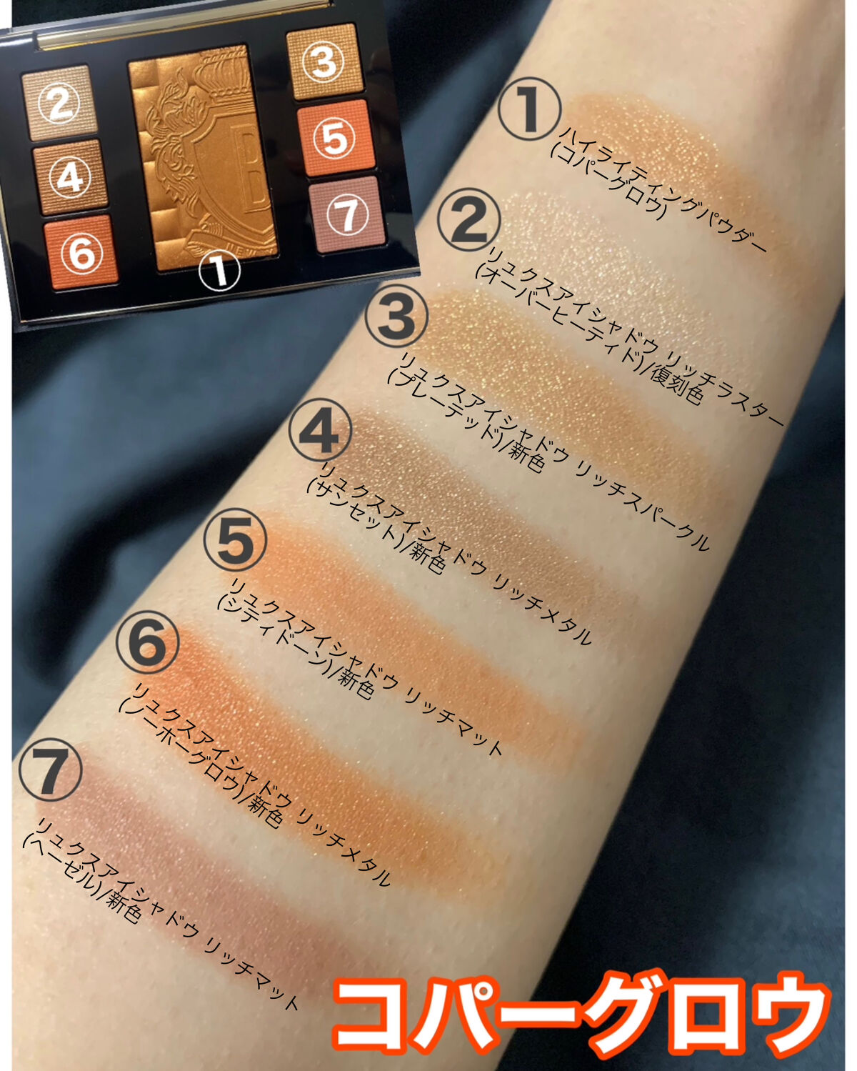 まずもう、このビジュアルやばすぎ...🥹💕 高級感たるや!!さすがCHANEL👏 色味も、ゴールドコッパーカラーなんて 私が好き過ぎる色で、こんなん買うしかない!笑 粉質もめっちゃ良くて、発色も良くてヤバい✨ 夜にくすんだりヨレる感じもなかったです😊
