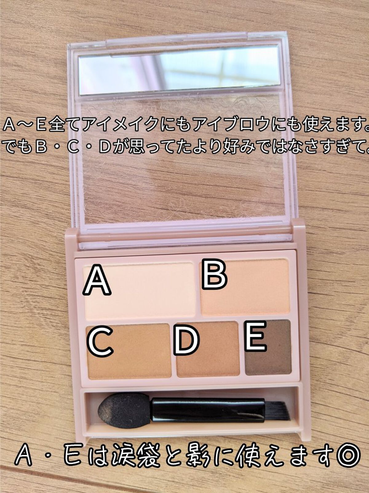 - アイメイク、これ1つで完了❤ アイシャドウ・アイブロウ・アイライナーとマルチに使える ラメなしマットな5色入りアイシャドウパレット 肌にとけ込むやわらかな陰影で、愛らしいナチュラルでか目に。 明度の違う同系色ブラウンで構成されたパレットなので、きれいなグラデーションが簡単に完成。 ナチュラルメイク派、学校・会社メイクにもぴったり! 撥水効果のあるオイルを配合することで、キレイが長持ちします。