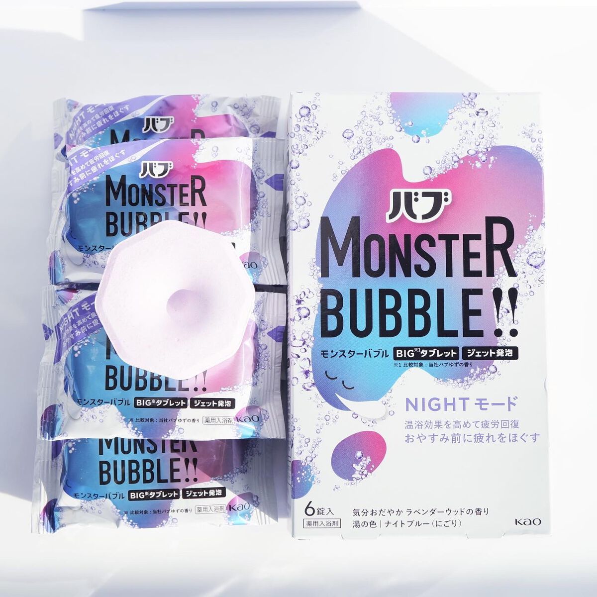 花王さまからいただきましたバブモンスターバブル NIGHTモードジュワっと回復!強炭酸チャージ!♡モンスター級に沸き立つ炭酸泡がお湯に溶け込んだら温浴効果UP❣️全身を包んで血の巡りを促進して、じゅわっとあたためるんだって🥹❤️私は夜のゆった...