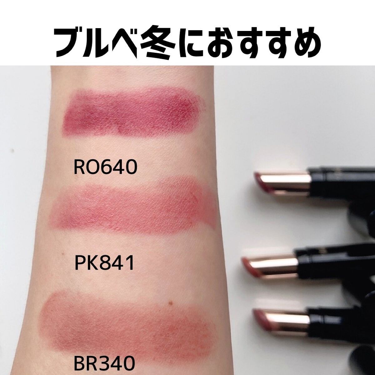 - <BR340 カームブラウン> トリエチルヘキサノイン、ジメチコン、トリメリト酸トリトリデシル、ホウケイ酸(Ca/Al)、トリイソステアリン酸ポリグリセリル-2、シリカ、(エチレン/プロピレン)コポリマー、合成ワックス、(ジメチコン/ビニルジメチコン)クロスポリマー、パラフィン、ポリメチルシルセスキオキサン、ラウロイルグルタミン酸ジ(フィトステリル/オクチルドデシル)、ステアロイルオキシステアリン酸オクチルドデシル、(アクリレーツ/アクリル酸ステアリル/メタクリル酸ジメチコン)コポリマー、ステアリン酸オクチルドデシル、ジメチルシリル化シリカ、トコフェロール、BHT、DPG、(アクリル酸/アクリル酸アルキル(C10-30))コポリマー、アルミナ、オクチルドデカノール、スクワラン、テトラ(ジ-t-ブチルヒドロキシヒドロケイヒ酸)ペンタエリスリチル、ハイドロゲンジメチコン、ポリエチレン、ポリプロピレン、酸化チタン、酸化鉄、黄4、赤202、赤218 <OR240 ダスティオレンジ> トリエチルヘキサノイン、ジメチコン、トリメリト酸トリトリデシル、ホウケイ酸(Ca/Al)、トリイソステアリン酸ポリグリセリル-2、シリカ、(エチレン/プロピレン)コポリマー、合成ワックス、(ジメチコン/ビニルジメチコン)クロスポリマー、パラフィン、ポリメチルシルセスキオキサン、ラウロイルグルタミン酸ジ(フィトステリル/オクチルドデシル)、ステアロイルオキシステアリン酸オクチルドデシル、(アクリレーツ/アクリル酸ステアリル/メタクリル酸ジメチコン)コポリマー、ステアリン酸オクチルドデシル、ジメチルシリル化シリカ、トコフェロール、BHT、DPG、(アクリル酸/アクリル酸アルキル(C10-30))コポリマー、アルミナ、オクチルドデカノール、スクワラン、テトラ(ジ-t-ブチルヒドロキシヒドロケイヒ酸)ペンタエリスリチル、ハイドロゲンジメチコン、ポリエチレン、ポリプロピレン、酸化チタン、酸化鉄、黄4、赤201、赤202、赤223 <PK840 アーバンピーチ> トリエチルヘキサノイン、ジメチコン、トリメリト酸トリトリデシル、ホウケイ酸(Ca/Al)、トリイソステアリン酸ポリグリセリル-2、シリカ、(エチレン/プロピレン)コポリマー、合成ワックス、(ジメチコン/ビニルジメチコン)クロスポリマー、パラフィン、ポリメチルシルセスキオキサン、ラウロイルグルタミン酸ジ(フィトステリル/オクチルドデシル)、ステアロイルオキシステアリン酸オクチルドデシル、(アクリレーツ/アクリル酸ステアリル/メタクリル酸ジメチコン)コポリマー、ステアリン酸オクチルドデシル、ジメチルシリル化シリカ、トコフェロール、BHT、DPG、(アクリル酸/アクリル酸アルキル(C10-30))コポリマー、アルミナ、オクチルドデカノール、スクワラン、テトラ(ジ-t-ブチルヒドロキシヒドロケイヒ酸)ペンタエリスリチル、ハイドロゲンジメチコン、ポリエチレン、ポリプロピレン、酸化チタン、酸化鉄、黄4、赤202、赤223 <PK841 ジャスミンピンク> トリエチルヘキサノイン、ジメチコン、トリメリト酸トリトリデシル、ホウケイ酸(Ca/Al)、トリイソステアリン酸ポリグリセリル-2、シリカ、(エチレン/プロピレン)コポリマー、合成ワックス、(ジメチコン/ビニルジメチコン)クロスポリマー、パラフィン、ポリメチルシルセスキオキサン、ラウロイルグルタミン酸ジ(フィトステリル/オクチルドデシル)、ステアロイルオキシステアリン酸オクチルドデシル、(アクリレーツ/アクリル酸ステアリル/メタクリル酸ジメチコン)コポリマー、ステアリン酸オクチルドデシル、ジメチルシリル化シリカ、トコフェロール、BHT、DPG、(アクリル酸/アクリル酸アルキル(C10-30))コポリマー、アルミナ、オクチルドデカノール、スクワラン、テトラ(ジ-t-ブチルヒドロキシヒドロケイヒ酸)ペンタエリスリチル、ハイドロゲンジメチコン、ポリエチレン、ポリプロピレン、酸化チタン、酸化鉄、黄4、赤202、赤218 <RD440 クラシックレッド> トリエチルヘキサノイン、ジメチコン、トリメリト酸トリトリデシル、ホウケイ酸(Ca/Al)、トリイソステアリン酸ポリグリセリル-2、シリカ、(エチレン/プロピレン)コポリマー、合成ワックス、(ジメチコン/ビニルジメチコン)クロスポリマー、パラフィン、ポリメチルシルセスキオキサン、ラウロイルグルタミン酸ジ(フィトステリル/オクチルドデシル)、ステアロイルオキシステアリン酸オクチルドデシル、(アクリレーツ/アクリル酸ステアリル/メタクリル酸ジメチコン)コポリマー、ステアリン酸オクチルドデシル、ジメチルシリル化シリカ、トコフェロール、BHT、DPG、(アクリル酸/アクリル酸アルキル(C10-30))コポリマー、アルミナ、オクチルドデカノール、スクワラン、テトラ(ジ-t-ブチルヒドロキシヒドロケイヒ酸)ペンタエリスリチル、ハイドロゲンジメチコン、ポリエチレン、ポリプロピレン、酸化チタン、酸化鉄、黄4、赤202、赤223 <RO640 ミディアムローズ> トリエチルヘキサノイン、ジメチコン、トリメリト酸トリトリデシル、ホウケイ酸(Ca/Al)、トリイソステアリン酸
