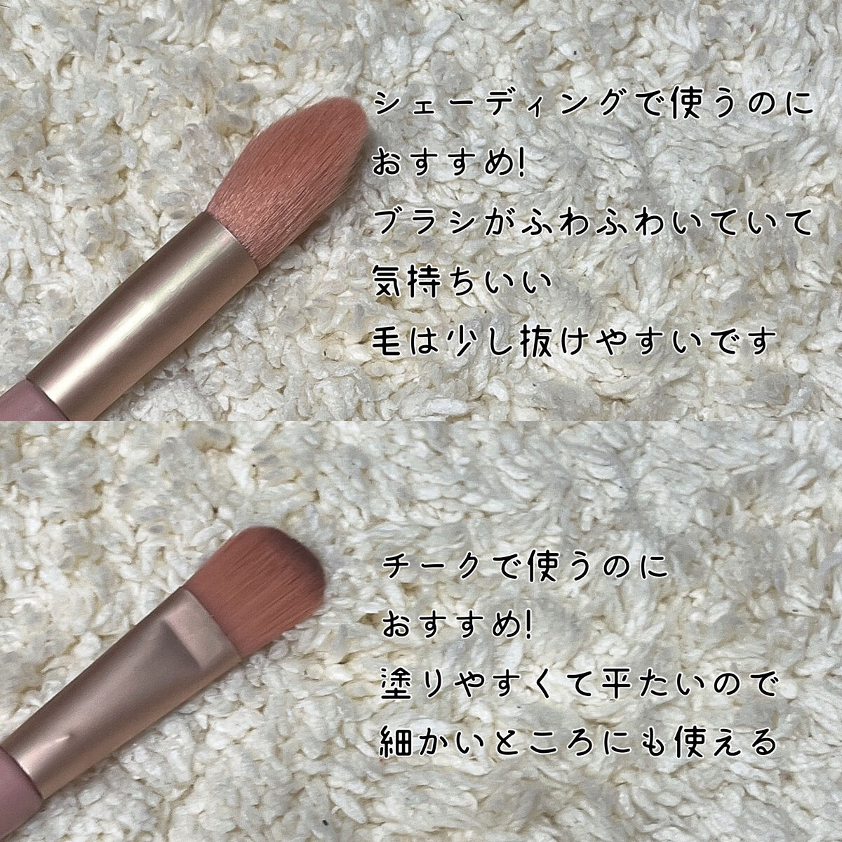 極細毛がたーっぷりで振るとぷりんぷりんするスーパーやわらかブラシ🍮 フェイスパウダーに特化しててお粉がふんわりと均一に仕上げられるよ✨ ベースメイク全般に使えるマルチブラシ☺️ ジェルブレンダーと濃密ブラシのダブルエンド✌️ プロのテクニックが簡単に再現できるファンデーション用ブラシ💓 三角のブラシで鼻の横や目のキワにしっかりフィットして隙なし肌ができる😇