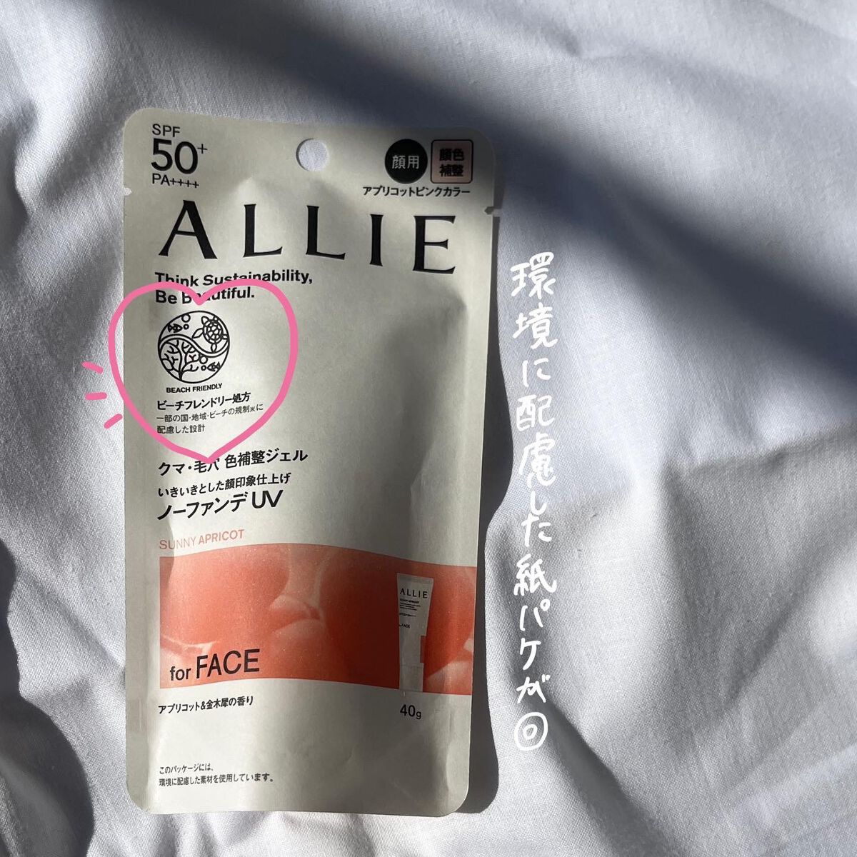 - 世界を想う 美しさつづく*1 日やけ止め おでかけも、マスクを外す機会も増える毎日に。 一部の国・地域・ビーチの規制に配慮した設計のビーチフレンドリー処方。 これ 1 本で、UV カット&顔色補整効果でクマ・くすみ・色ムラまでカバー! テカりにくく、くずれにくいノーファンデ UV*2 【ENNUI PURPLE】 くすみや毛穴をカバー 儚げな透明感のある顔印象続く 澄んだ気分を誘う 紫陽花しずく&セージの香り 【SUNNY APRICOT】 クマや毛穴をカバー いきいきとした血色感のある顔印象つづく 思わず出かけたくなる アプリコット&金木犀の香り 【SHERR BEIGE】 色ムラや毛穴をカバー 均一で抜け感のある顔印象つづく 自然で飾らない シトラスウッディ&パチュリの香り ●一部の国・地域・ビーチの規制に配慮した設計の「ビーチフレンドリー処方」 ●SPF50+・PA++++ ●汗・水 こすれに強く落ちにくい フリクションプルーフ・スーパーウォータープルーフ ●ベタつきにくい感触がつづく ●テカりにくくキレイな肌仕上がりがつづく ●環境に配慮した素材を使用したパッケージ採用 ●美容液成分(保湿)ヒアルロン酸Na配合 ●顔用 ●普段のメイククレンジングで落とせる ●マスク・タオル等につきにくい ●化粧下地効果 *1 スキンケア効果またはメイクアップ効果による肌仕上がりのこと *2 ファンデーション未使用時でも、自然なベースメイクが仕上がる日やけ止めのこと *3 チリ・ほこり・PM2.5・花粉等すべての微粒子汚れの付着を防ぐわけではありません 01:ENNUI PURPLE パープル 02:SUNNY APRICOT アプリコットピンク 03:SHEER BEIGE ミルキーベージュ