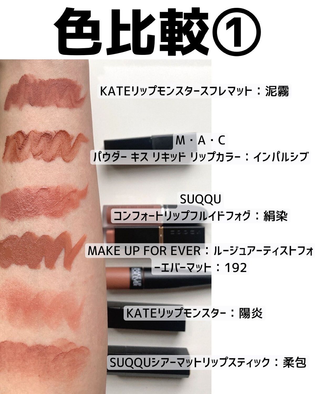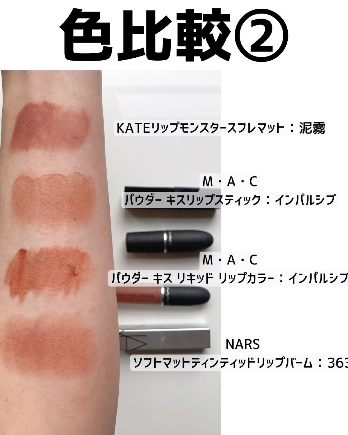 #提供❁.˚‧º‧‧º·˚.❁ リプモン スフレマット 4色スウォッチ❁.˚‧º‧‧º·˚.❁KATEリップモンスタースフレマットをお試し✧*˚₊‧ੈ✩おすすめポイントੈ✩‧₊˚*⋆つけたての色が長時間持続⋆ふんわりマット質感に変化する落...
