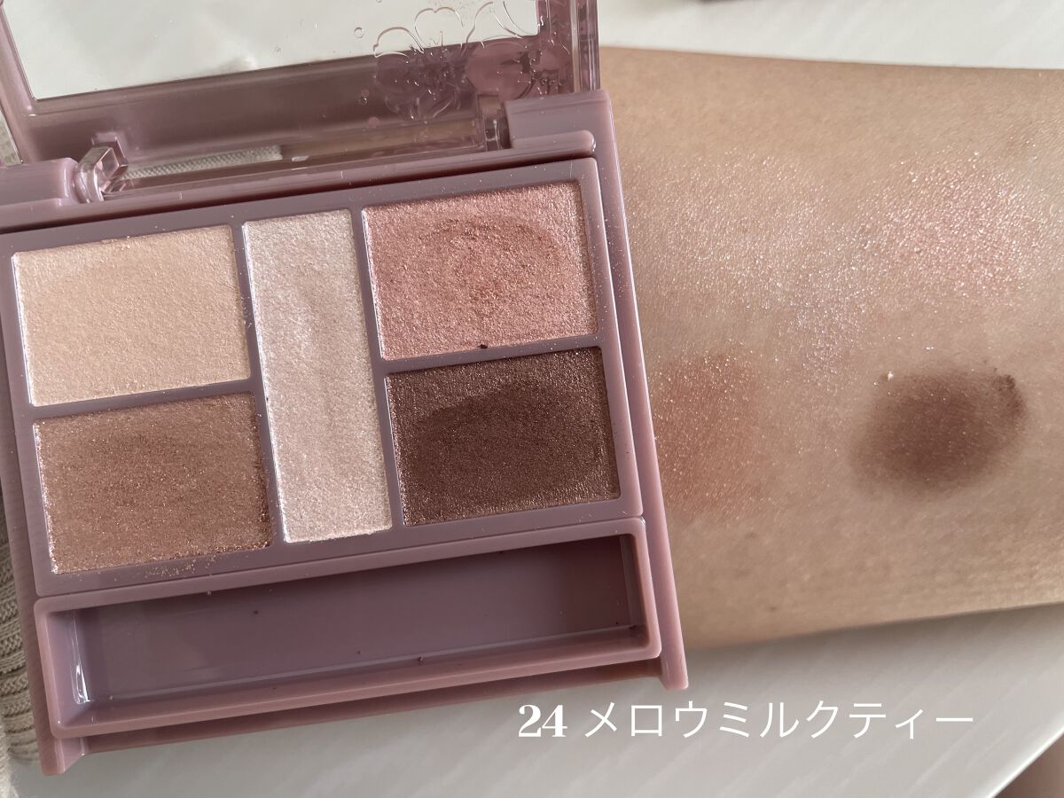 キャンメイクパーフェクトスタイリストアイズ24メロウミルクティー左上白みベージュラメ入り✨️右上オレンジみピンクラメ入り✨️真ん中ちょいピンクみホワイトラメ✨️左下ブラウンベージュラメ入り✨️右下イエベブラウンラメ入り✨️イエベ春、ブルベ夏向...