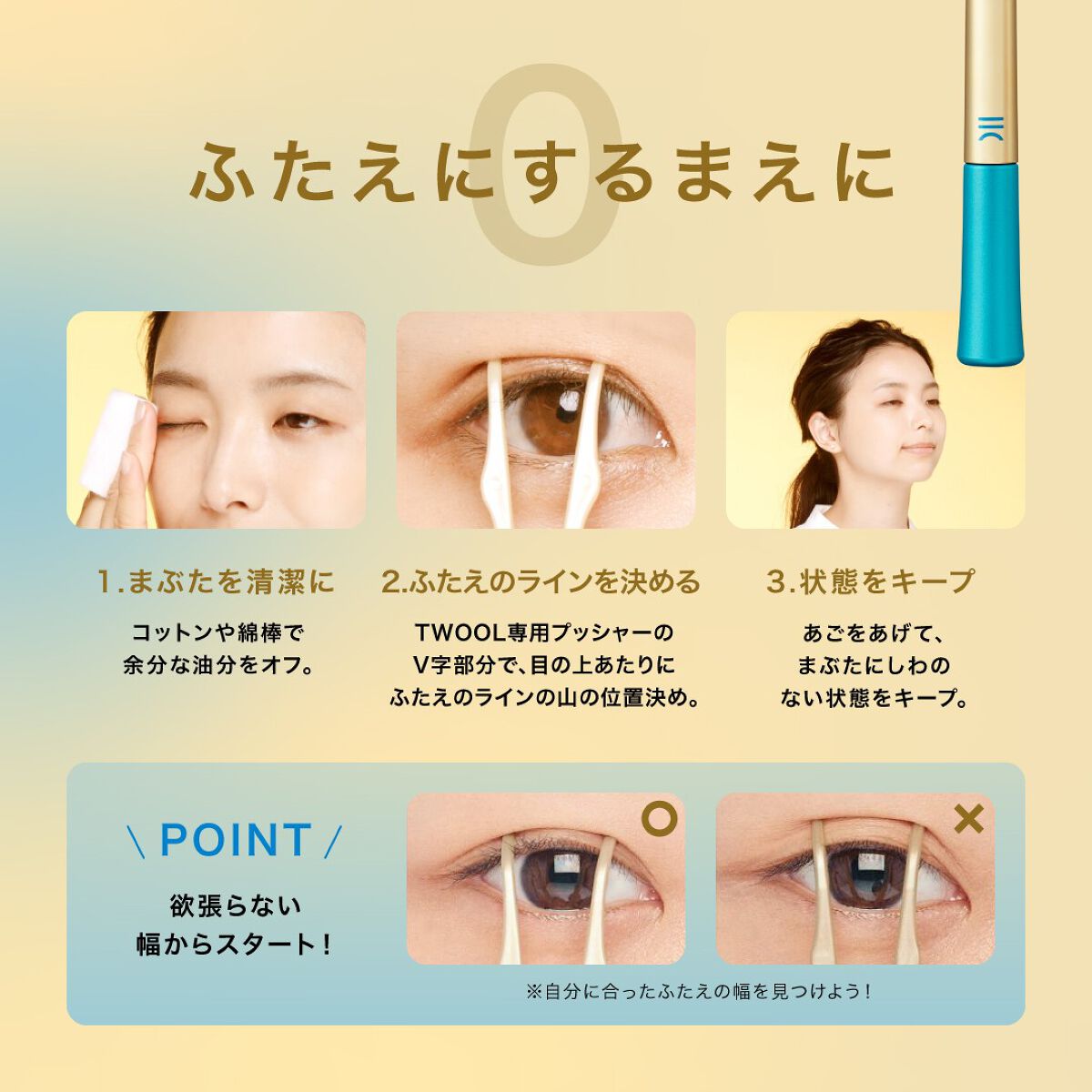 - 【感動の自然さ】 ・膜を作ってまぶたに折り込むタイプ ・ふたえの幅を広げたい方、ひとえの方へ ・今までの皮膜では叶わなかった方に ・薄付きなのにしっかり硬い膜でまぶたを支える ・テカらず肌になじむ ・天然ゴムラテックスフリーの新処方(シン・ラテックス) ・目元のハリケアにも*メイクアップ効果による ・クセ付け・保湿成分配合