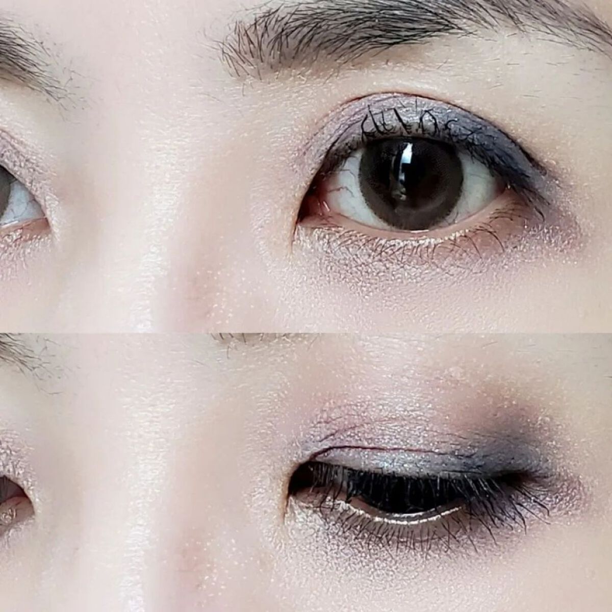 なんとなくだけど左側がブルベ寄り、右側がイエベ寄りの色味でニュートラルなパレットかなと思いました。 目元写真みると発色薄く見えるかなとおもいますが朝メイクして、直さず夜に撮ったのでこんな感じです。 カラコンはmimucoのブラウンフォンデュミムコのカラコンはどれも自然でかわいいです。