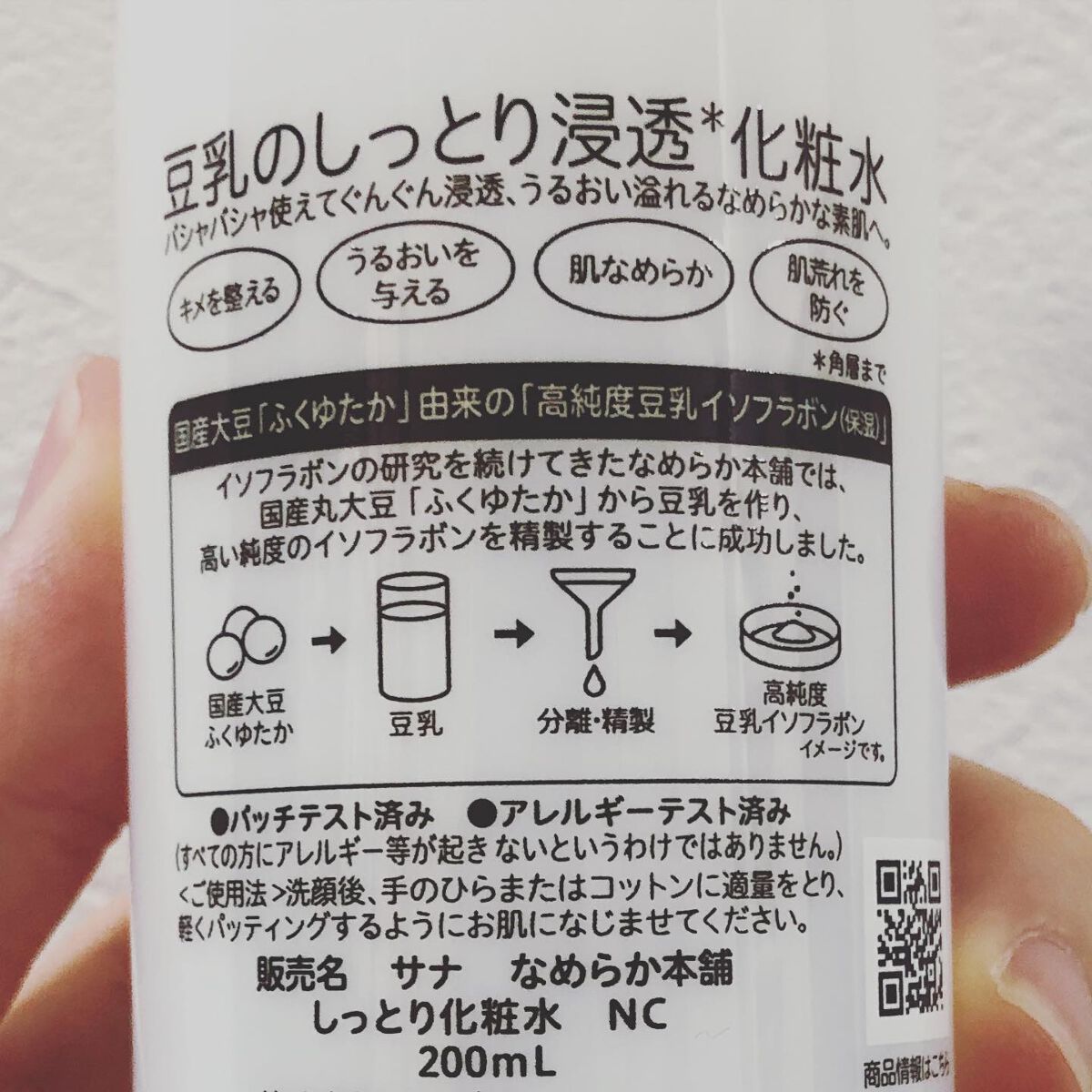 - <200ml> 水、グリセリン、BG、エタノール、エチルヘキサン酸セチル、豆乳イソフラボン、豆乳発酵液、(アクリル酸ヒドロキシエチル/アクリロイルジメチルタウリンNa)コポリマー、PEG-40水添ヒマシ油、アルギニン、カルボマー、シクロデキストリン、スクワラン、セルロースガム、ダイズタンパク、ダイズ種子エキス、ネオペンタン酸イソステアリル、ポリソルベート60、ラウロイルグルタミン酸ジ(オクチルドデシル/フィトステリル/ベヘニル)、フェノキシエタノール、メチルパラベン <つめかえ用180ml> 水、グリセリン、BG、エタノール、エチルヘキサン酸セチル、豆乳イソフラボン、豆乳発酵液、(アクリル酸ヒドロキシエチル/アクリロイルジメチルタウリンNa)コポリマー、PEG-40水添ヒマシ油、アルギニン、カルボマー、シクロデキストリン、スクワラン、セルロースガム、ダイズタンパク、ダイズ種子エキス、ネオペンタン酸イソステアリル、ポリソルベート60、ラウロイルグルタミン酸ジ(オクチルドデシル/フィトステリル/ベヘニル)、フェノキシエタノール、メチルパラベン