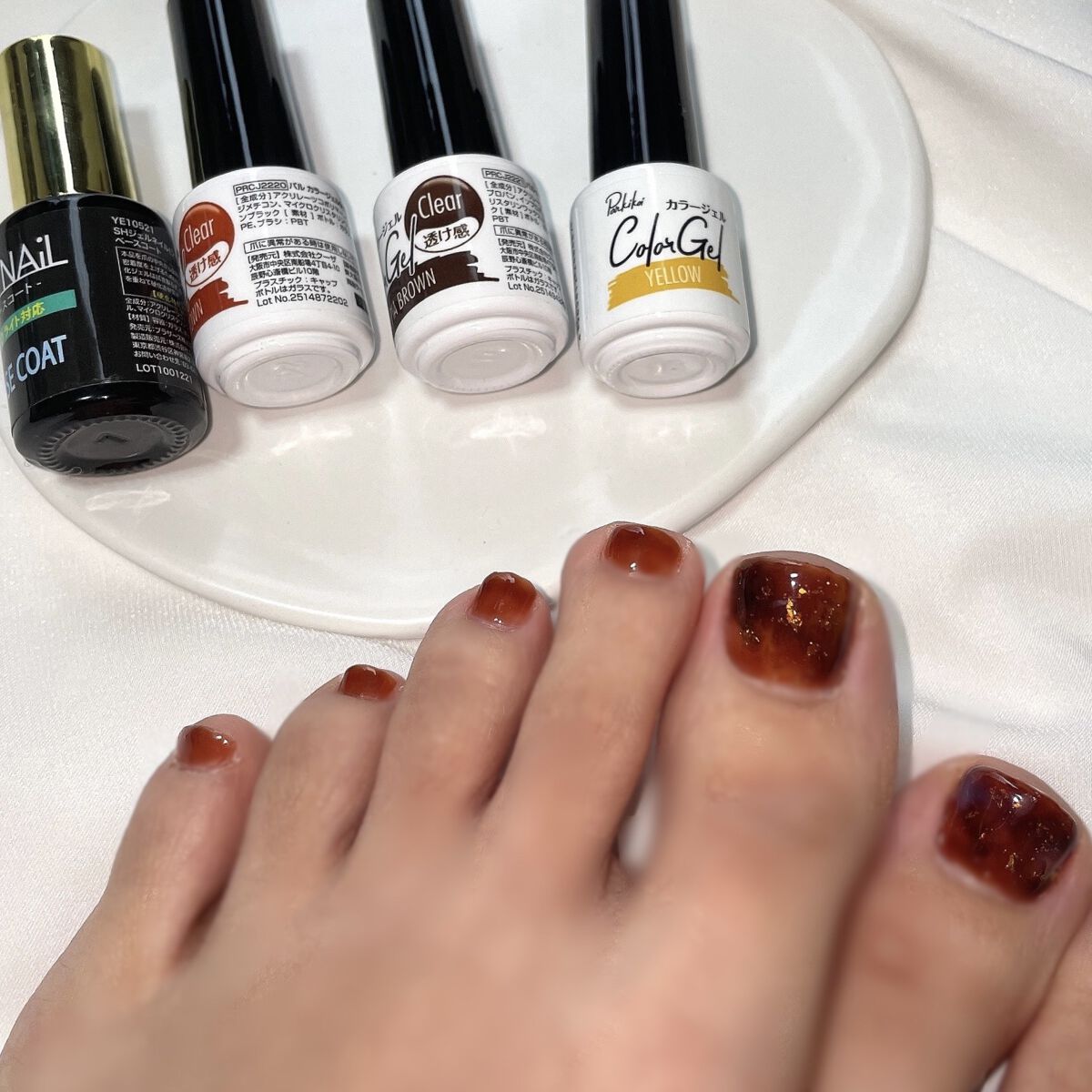 鼈甲部分はキャンドゥの3色とゴールドの箔を使用しました♡ ストーンはSHEINのものを使用。 ▶︎キャンドゥ Parkikoi カラージェル ・クリアブラック ・キャラメルブラウン ・ガーネットブラウン