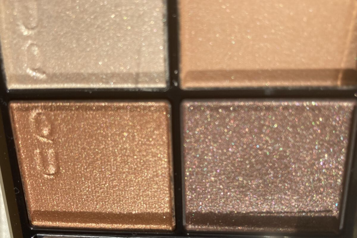 大人可愛い、上品なオレンジブラウンで、私の肌の上では少しピンク味のある、グレーの要素もある様なお色に発色しました♡ しっとりした粉質で高発色、そして左上の何とも言えないツヤツヤなラメ感… オシャレだけど奇抜さの無い絶妙なバランスでまた感動してます✧︎*。 このアイシャドウはイエベ秋の私にとって、なんだか春が待ち遠しくなる様な、そんな明るい気分にさせてくれるパレットでした♡