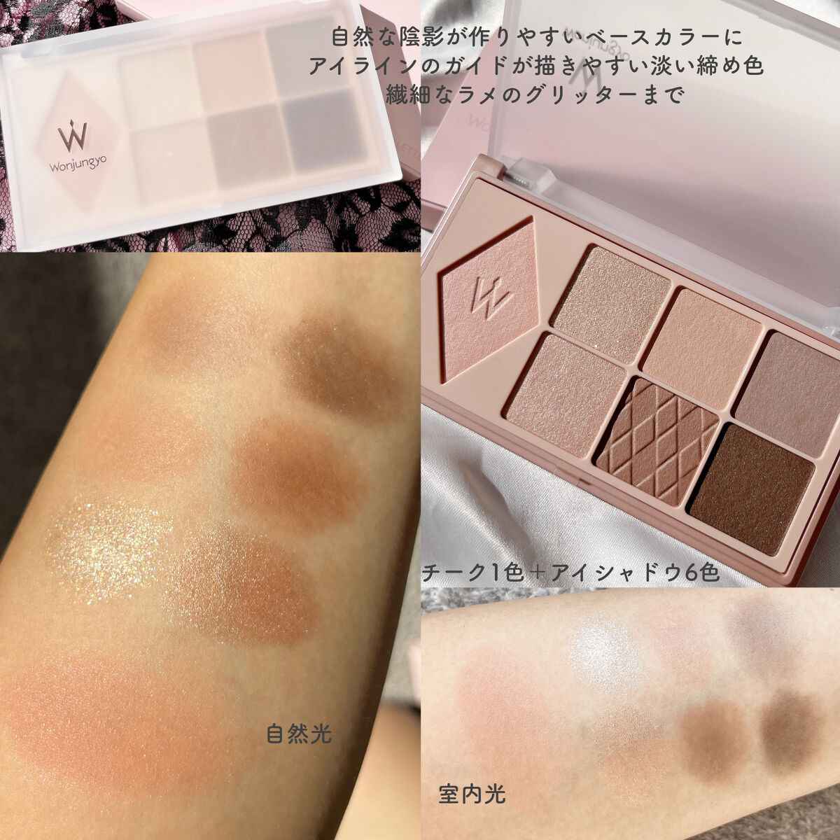 \絶対✨可愛くなりたい日のメイク♡/💎WonjungyoウォンジョンヨWデイリームードアップパレットカラー:01ソフトモーブピンク:03ブロッサムコーラル:04クライローズ各¥2,420・目元スウォッチ画像は、04クライローズのチーク部分を目...