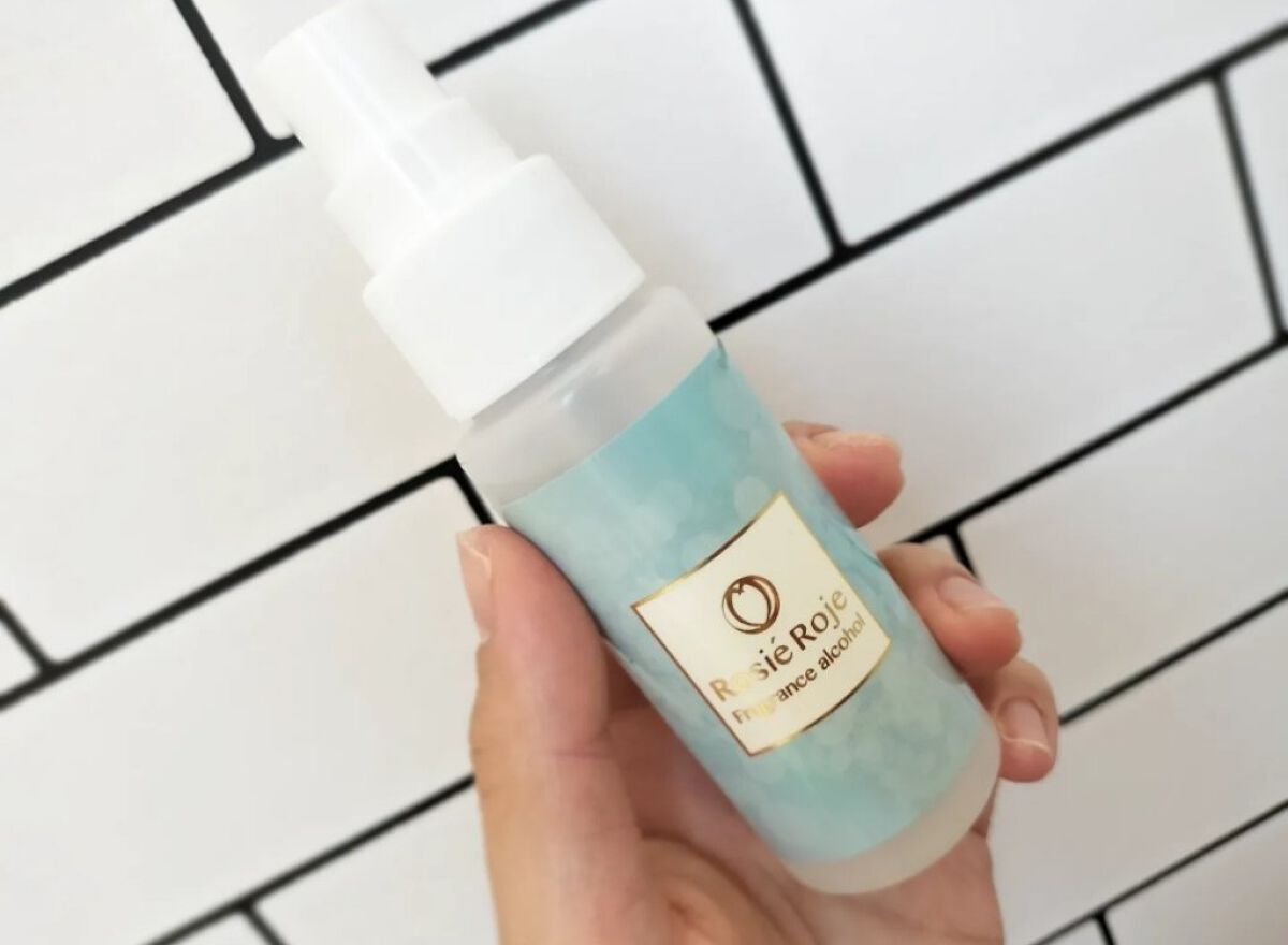 お肌に潤いを与える桜の花エキスとお肌の調子を整えてくれるパッションフラワーエキス配合 香りが2段階 ペパーミントからフローラルへと変わるんです いい香りになっているの。気分も高めてくれるスプレー