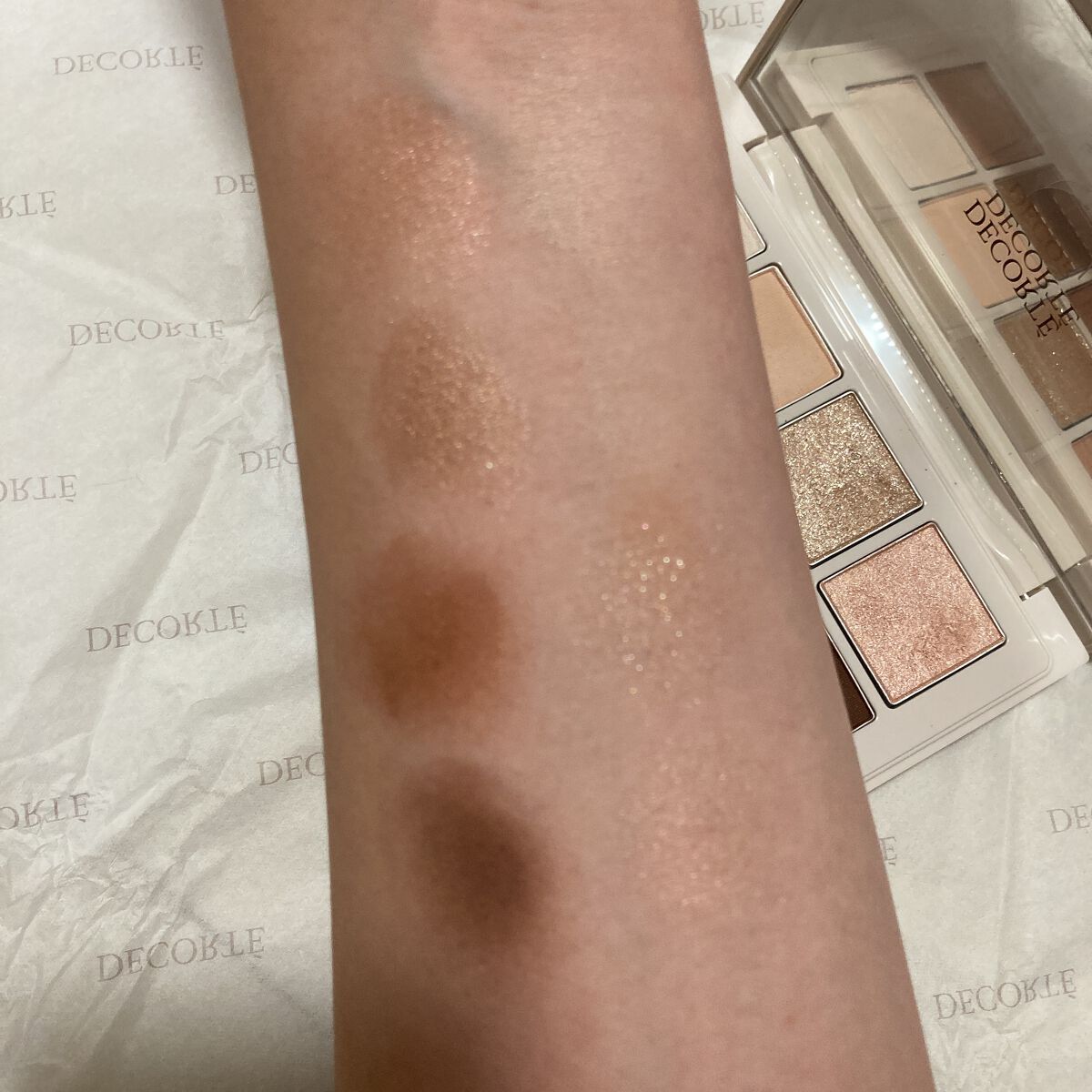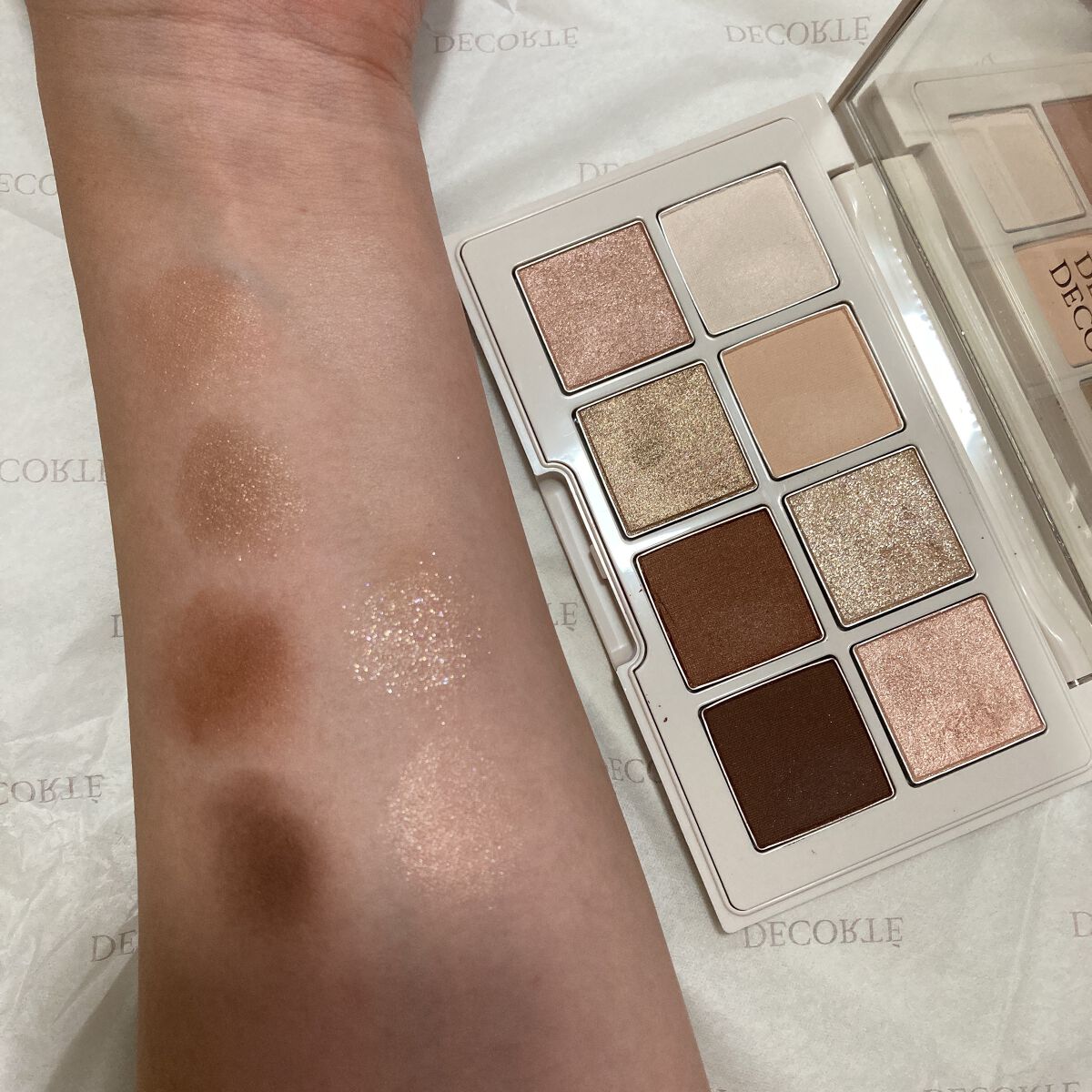 アイシャドは、見た目の色そのままな感じの発色で、繊細なグラデーションになる色味です。綺麗な艶感にみえる控えめなラメが日常使いにすごく良さそうです。 ほんとに細かい粉で、薄いピンク色ですが、つけたかどうかわからない感じなのに、ふんわり毛穴をぼかしてくれます。 見た目も可愛くてかなりテンションあがります!