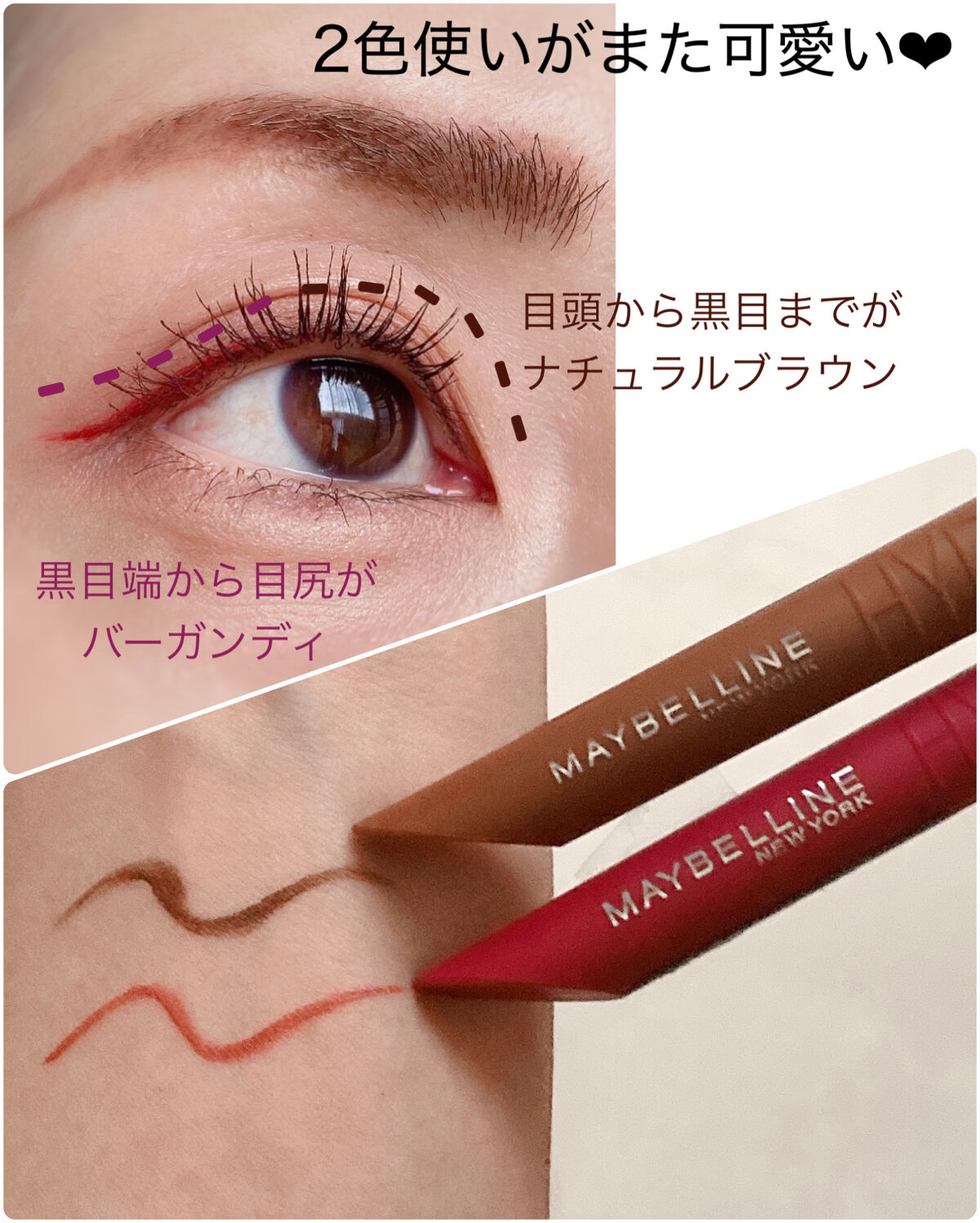 今回はメイベリンウルトラカラーアイライナー商品紹介と使用感です✨インパクトのあるレッドカラー❗️角度によりブラウンの深みもありますしっかりした筆なので細く引きやすい滲みにくいのも⭕️🦋カラーライナーが好きなので 購入して良かったと思う商品でし...