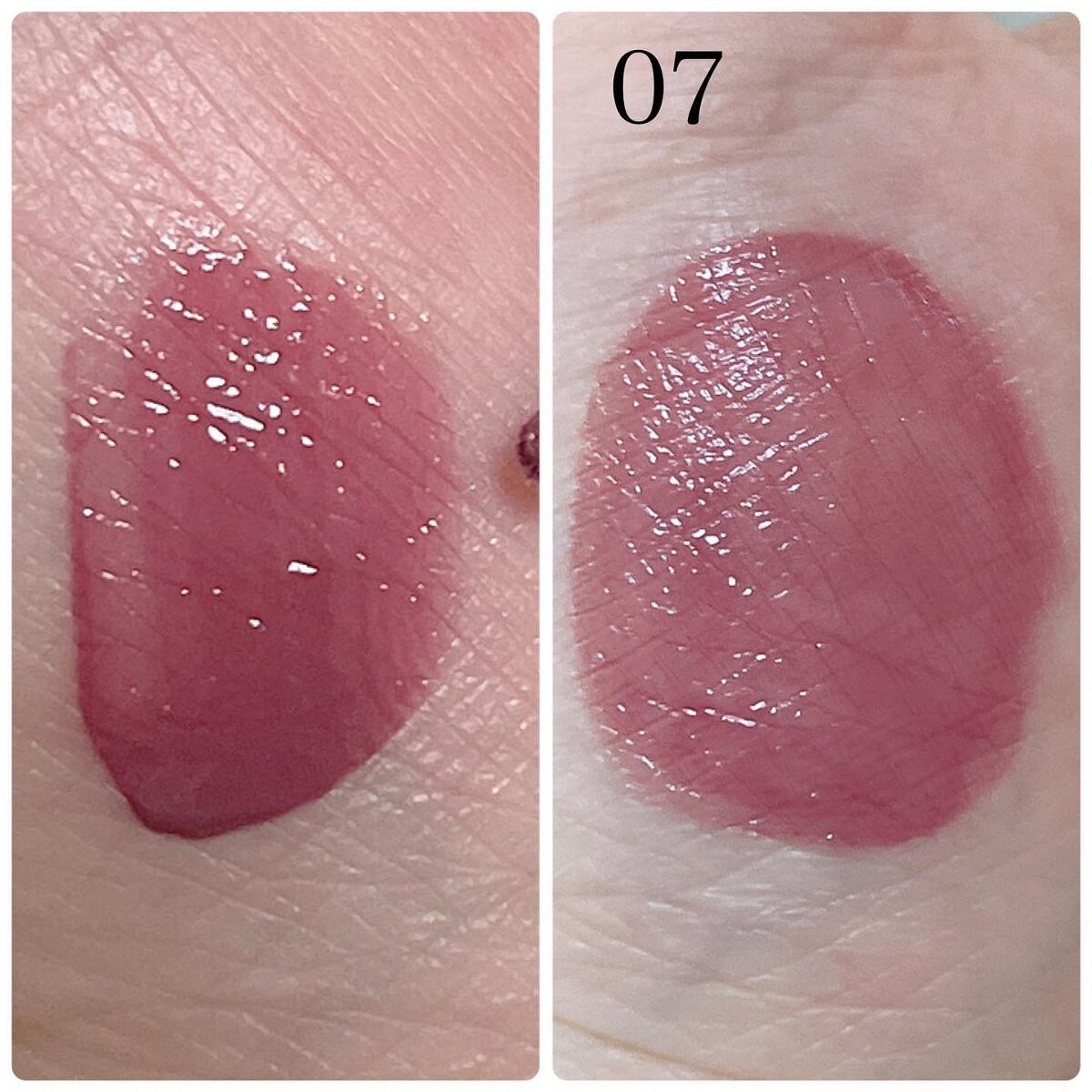 程よい透け感のある薄膜美発色なリップ。07は青みがしっかり効いたラベンダーモーヴピンク。 パープルニュアンスが大人っぽくアンニュイな雰囲気に🪻 青みが得意なブルベにイチオシ🫶