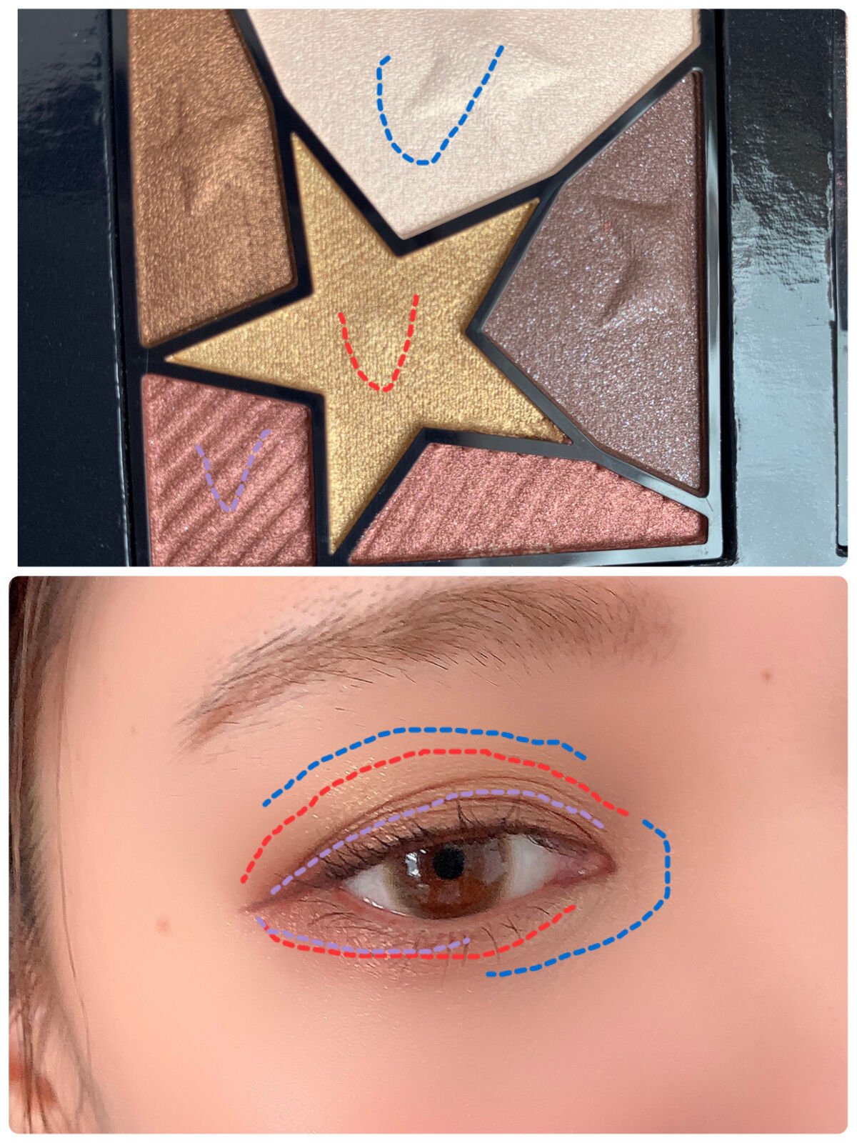 アイシャドウ色味やっぱり可愛いですね💕 星柄だし、星好きにはたまらんデザインとシャドーの配色🥺🥺🥺
