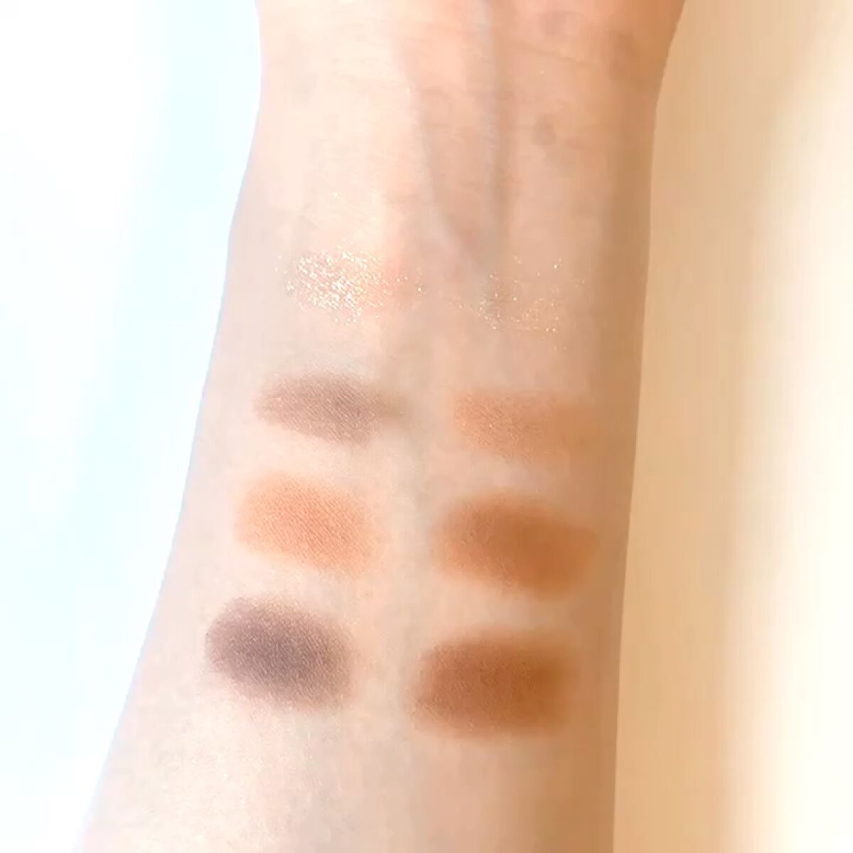 マットタイプのナチュラルなアイシャドウです。 アイシャドウとしてはもちろん、眉毛や涙袋、二重延長にも使えて、統一感のあるメイクができます。 シンプルなブラウンですが、左下のカラーに少し赤みがあり、オシャレみえします。 上2つだけ使うと、少しほりが深く見えて、学校にも使えると思います。