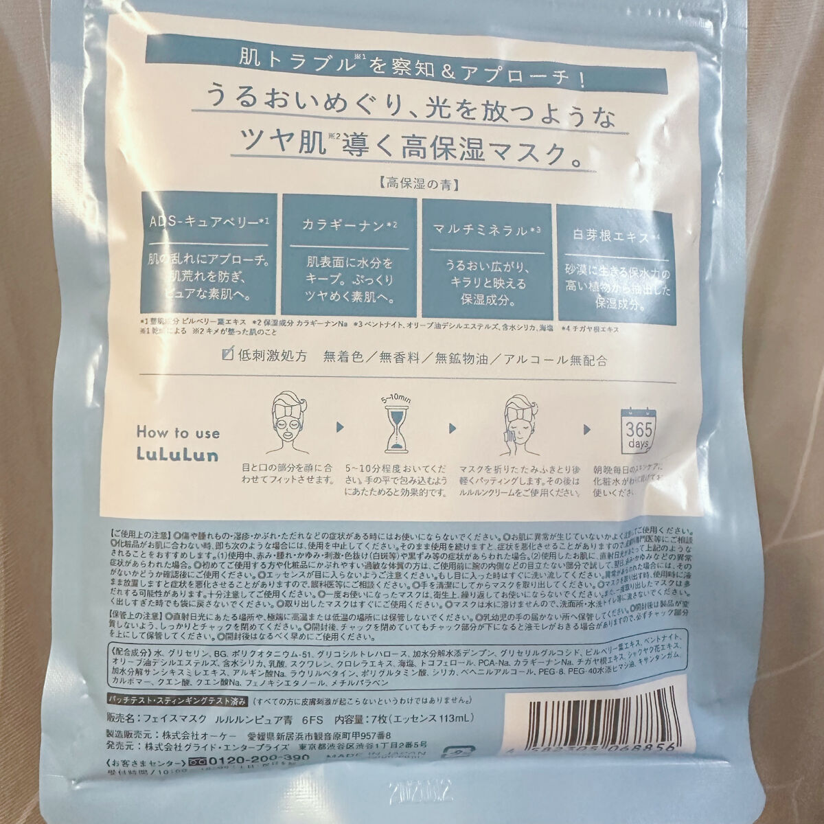 - 「ルルルン」シリーズが「ルルルンピュア」になってリニューアル。もっちり高保湿タイプのマスク。