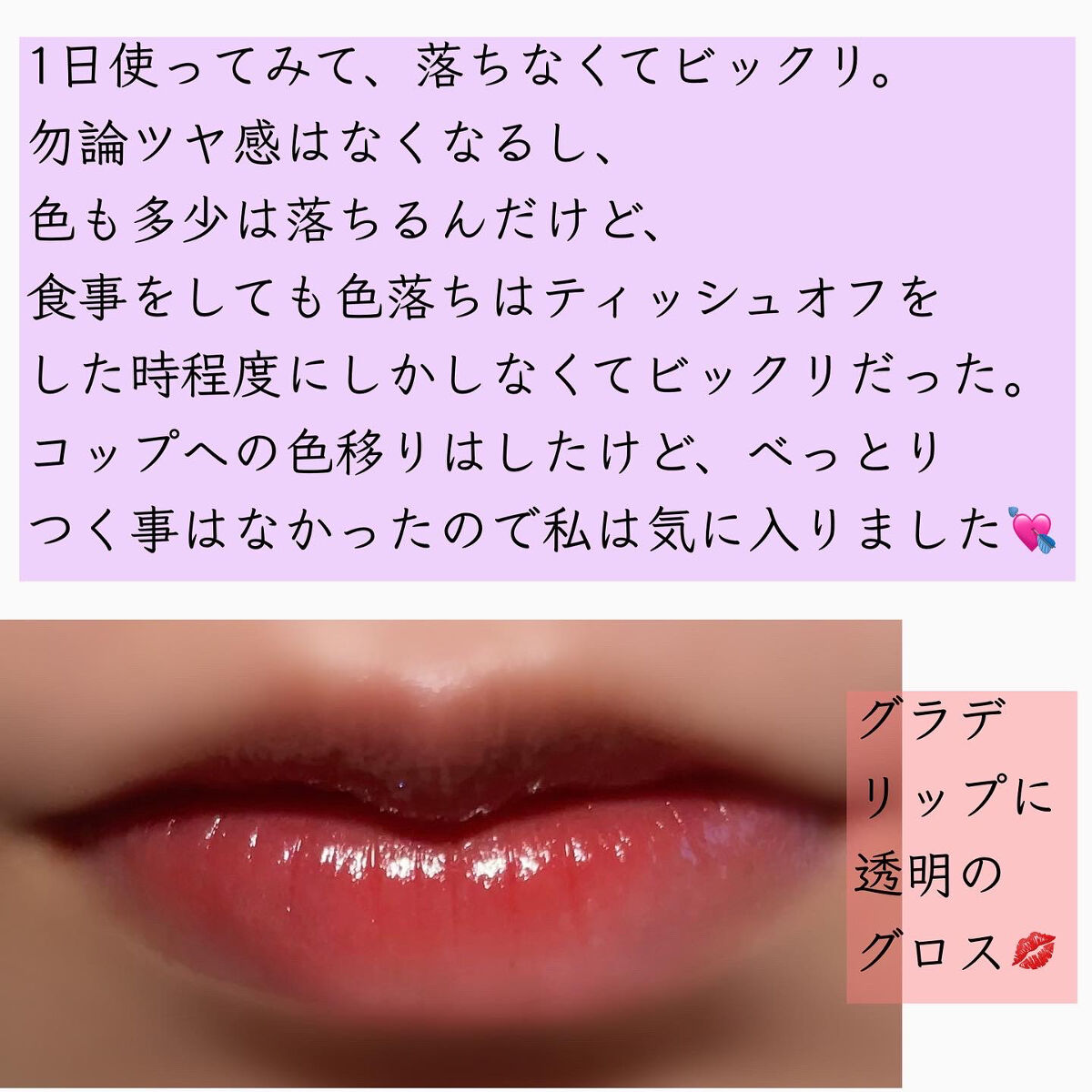 | 口紅・グロス・リップライナーランキング第44位 | 乾燥しにくく、艶感をキープしてくれて、ティント特有の色持ちも良く、ぷるっとしたジューシーな唇に仕上がります | 詳細を見る | |