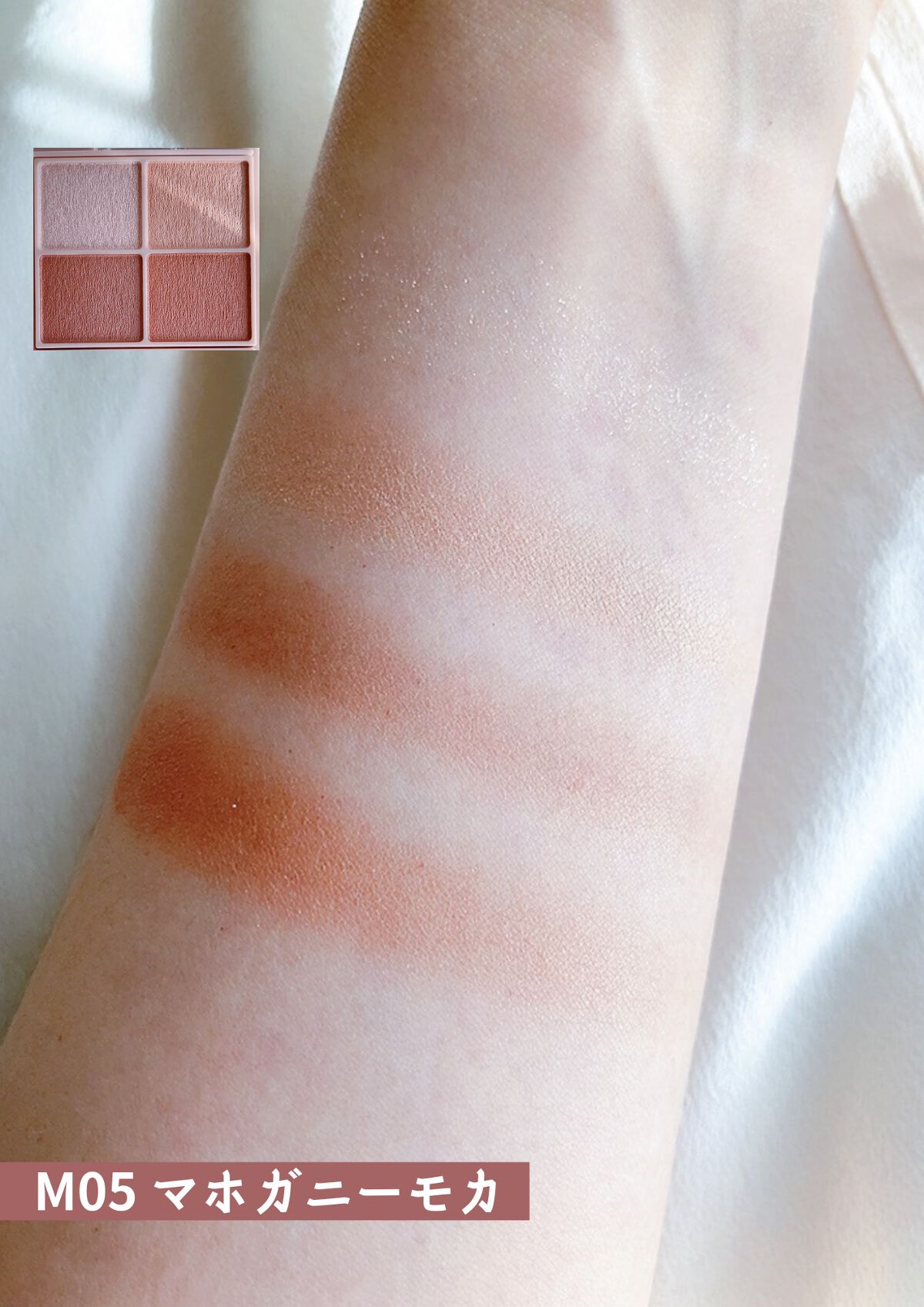 - シルキースフレアイズの姉妹品♡ 肌に溶け込むような透けマットシャドウ 透け感のある柔らかい仕上がりになるマット3色と、透け発色の繊細ラメ1色のパレットシャドウ♡ 完全マットアイや、ラメ×マットアイなど、メイクのパターンを楽しみましょう!