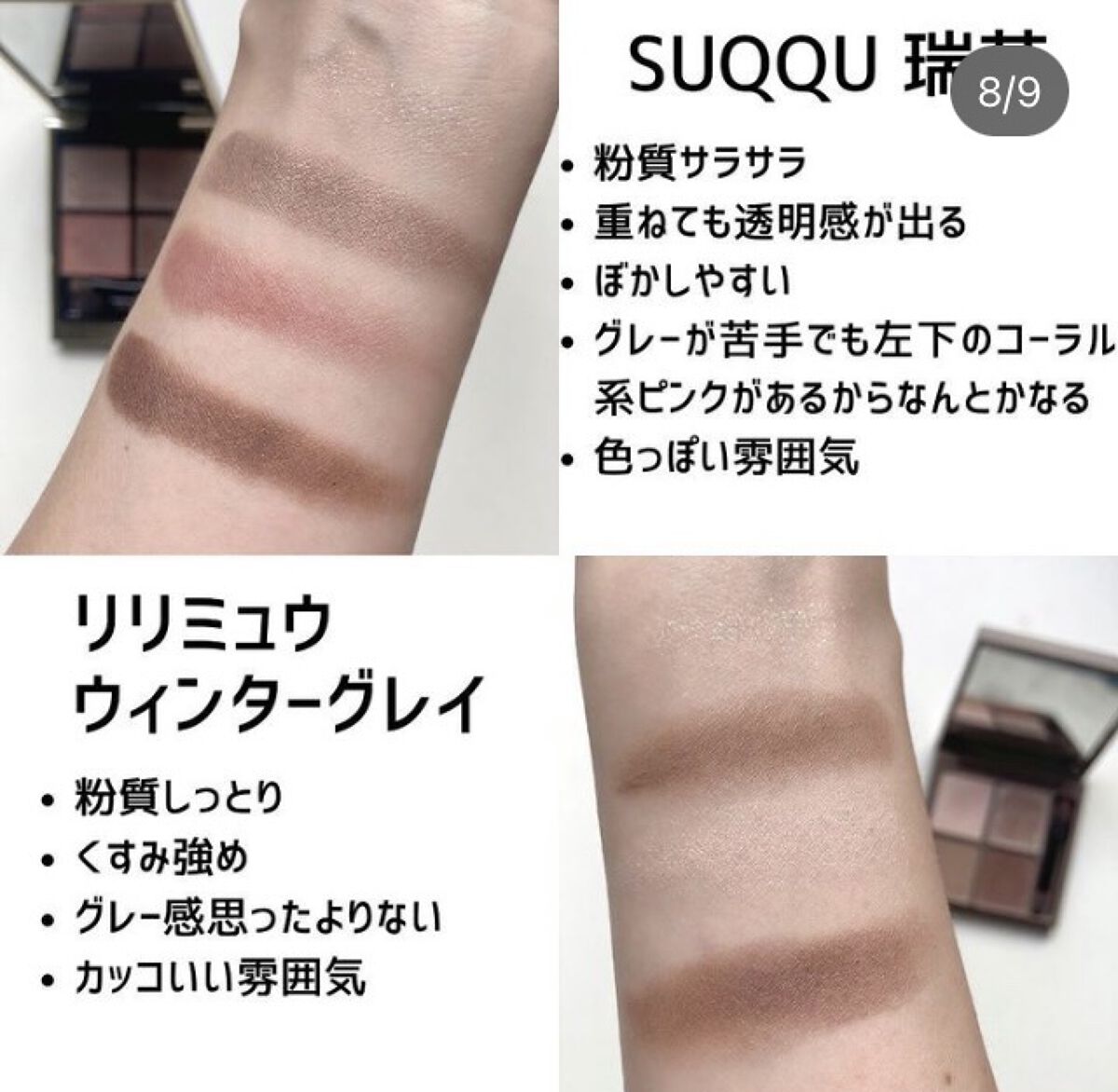 SUQQUのアイシャドウパレットです❁⃘*.゚ 他のアイシャドウに比べて大きめでなかなかなくなりません! 落ち着いた使いやすいカラーが多くめちゃめちゃおすすめです♪ ラメがSUQQU特有でめちゃめちゃ綺麗です❁¨̮