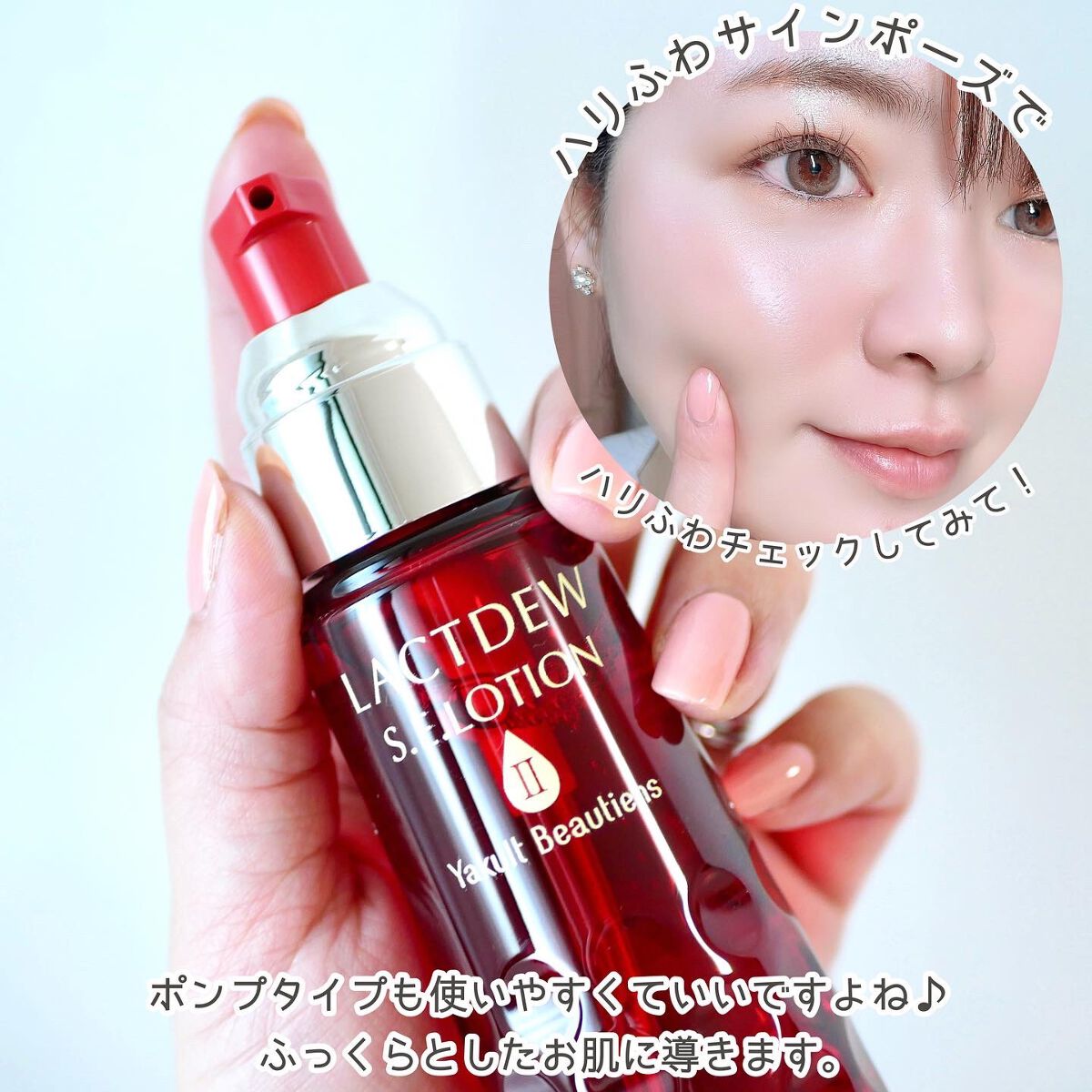 ヤクルトが作った乳酸菌生まれのスキンケア「ラクトデュウ(LACTDEW)」の化粧水◎ たっぷりのうるおいで乾燥による小ジワを目立たなくし、ふっくらとしたハリに満ちた素肌へと導きます。 長年の乳酸菌研究から生まれたオリジナル保湿成分がお肌(角質層)に素早く浸透して、うるおいを長時間抱え込むため、ふっくらと押し返すようなハリ感を生み出します。 少しトロッとしたテクスチャーで保湿力が高いローション。ベタつきヌルつきも感じないので朝晩問わずに使えるので気に入っています!