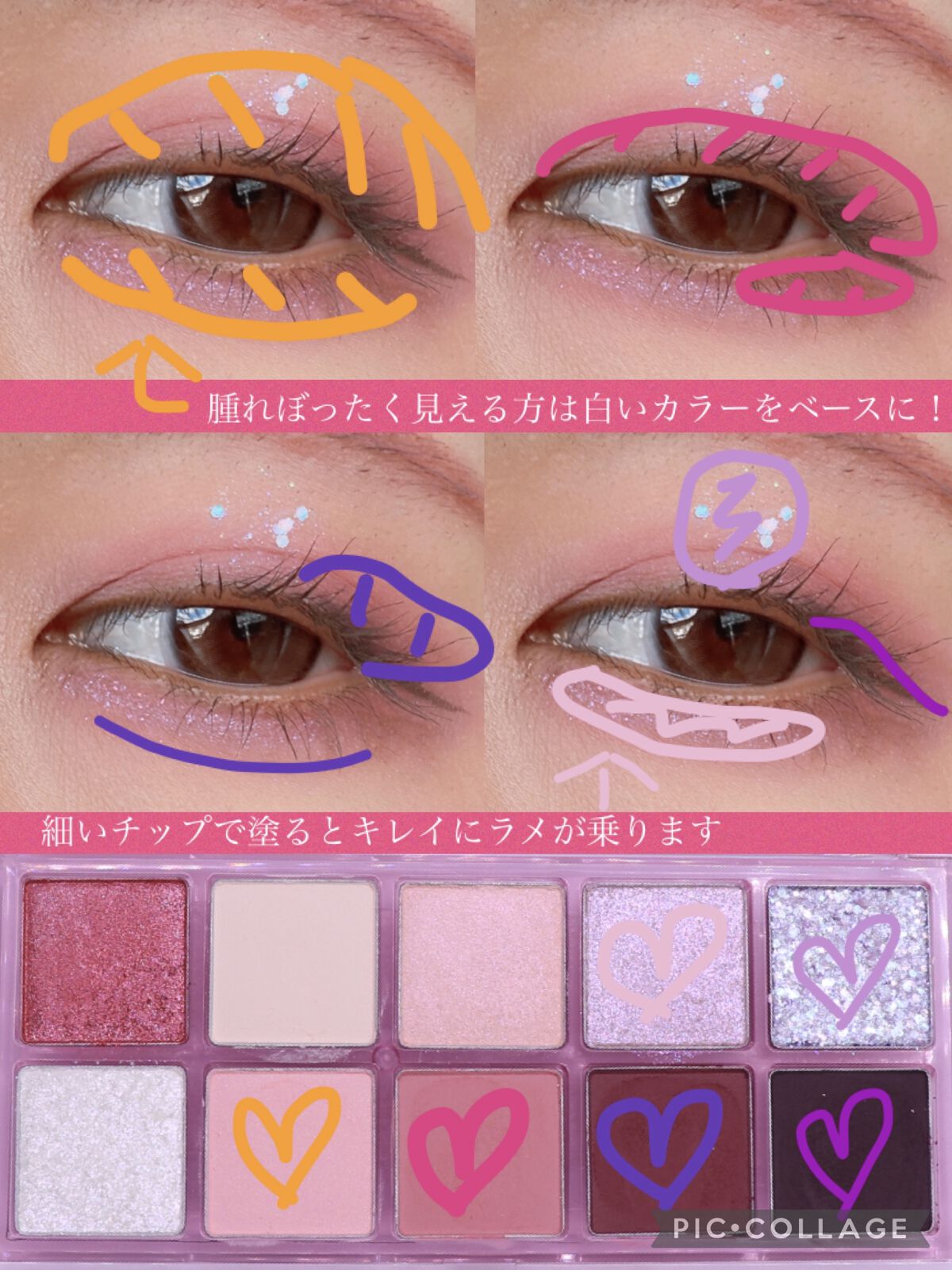 コーラルピンクやくすみ過ぎないレッドが入っているパレット! ラメがイエローラメですごく可愛い! コーラルピンクとレッドのアイシャドウはラメ入りとマットタイプがあって気分に合わせて色んなメイクが出来ます お気に入りポイントは右上のホワイトシルバーのようなカラーにパールがたくさん入っていて涙袋に塗るとぷっくり見えるところ! カラーは一見濃く見えますがテクスチャーが柔らかく、発色は控えめでふんわり発色です 春メイクやピンクメイクがお好きな方にオススメしたい話題のアイシャドウでした!