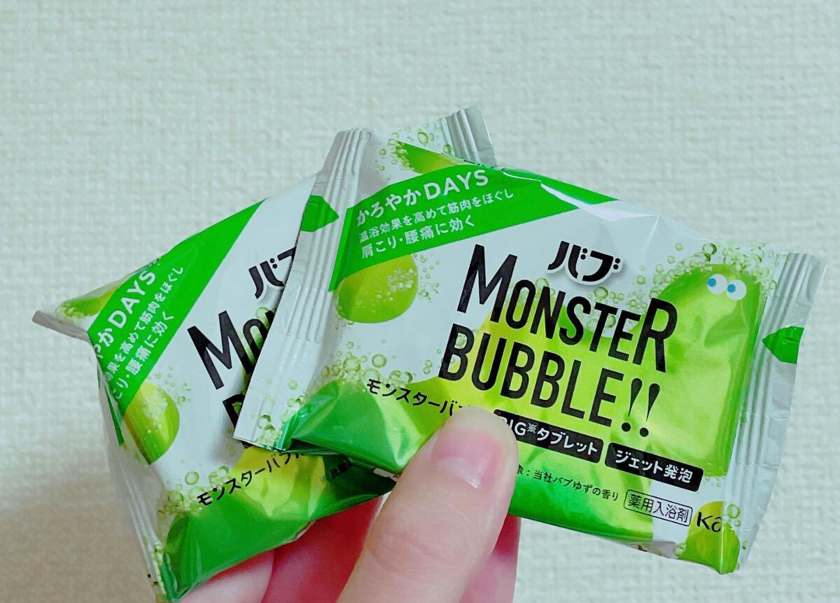 花王さまからいただきました商品名:バブモンスターバブル かろやかDAYS大きいタブレットで湯船に入れると、強炭酸でしゅわしゅわと溶けていきました!鮮やかな黄緑色の湯船で気分もリフレッシュできました💚香りは湿布みたいな匂いがしました!疲れた時は...