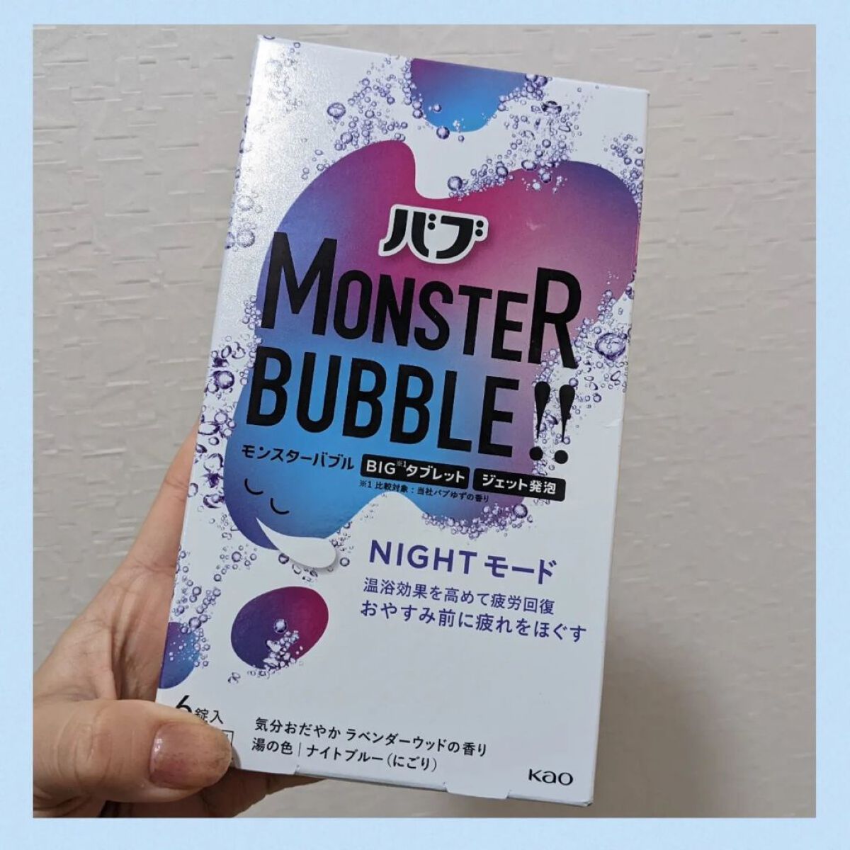 バブモンスターバブル NIGHTモードジュワっと回復!強炭酸チャージ**勢いよく発泡しながら、炭酸がお湯に溶け込むこと時々ひとりでお風呂タイムを楽しんでいます💕そんなときに欠かせないのは入浴剤✨今回使ってみたバブモンスターバブル NIGHTモ...