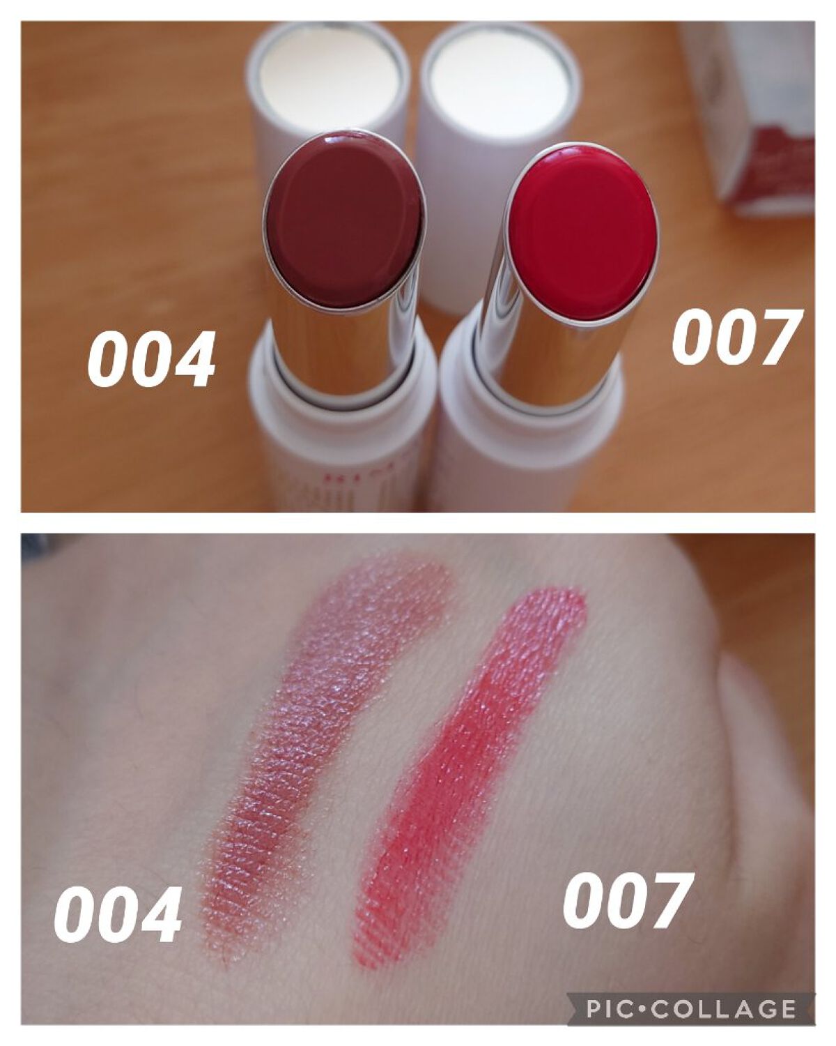 巷で言われてる通り、ティントじゃないの?ってくらいの色持ちでした👏 かなり滑らかでするする塗れて、思ったより透け感がある色の付き方でした🤔 保湿感も高くて、リップで荒れることの多い私でも大丈夫でした🙌 excelのほうがマットまでいきませんが、高発色で透け感はあまりなく、KATEは透け感があって保湿力高かったです🤗 高発色を求めるならexcelで、KATEもなかなかの発色ですが、色持ちと保湿重視ならKATEって感じの違いかなって個人的に思います👌 お風呂に入って出ても、ティントじゃないのに何故か残ってました!! なのでお泊まりとか、血色なくて困るって方とか、すっぴんメイクしたいからその前の日中の仕込み(?)とかにも使えるかと思いました🤭