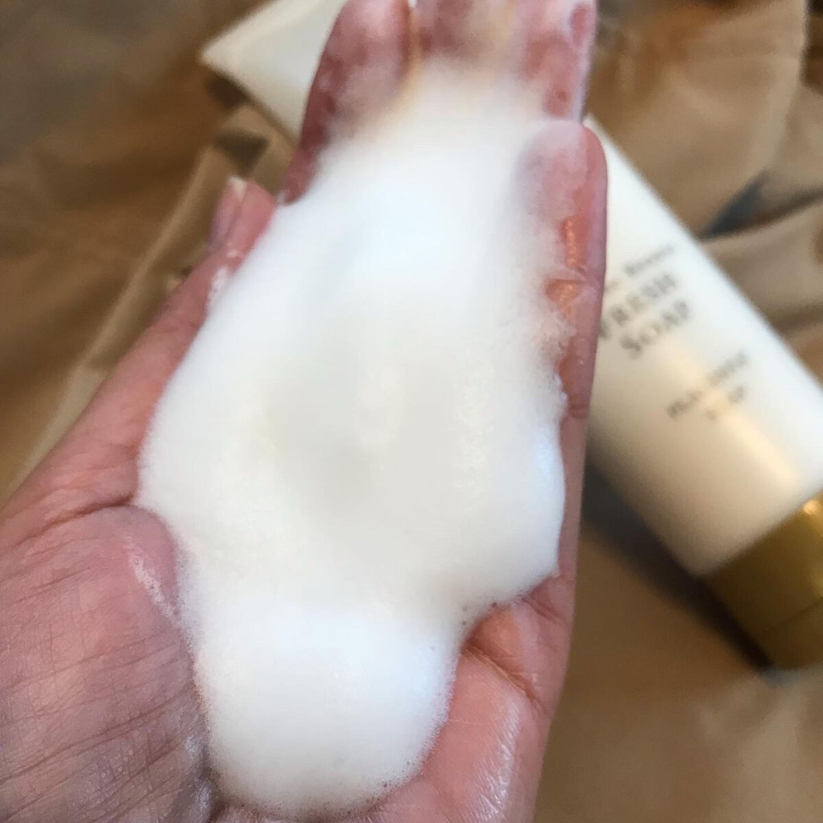 白いチューブ状で、キャップが若草色でオシャレです。 ワンタッチキャップで開けやすかったです。 手にとってみると、白色の生石鹸です。 洗顔ネットを使って、真っ白でもっちりモコモコしたキメの細かい泡ができました。 上質な泡で、洗顔できました。 弾力性のあるホイップクリームのような泡です。 濃密泡で顔を包み込むようにして洗顔できて、手のひらと顔の間にクッション泡があって、お肌をゴシゴシこすらずに洗顔できます。 無香料で原料の香りも特に感じませんでした。 香りに敏感な方、こだわりのある方にもおススメです。 泡切れもよかったです。 洗いあがりは、キシキシする感じもありませんでした。