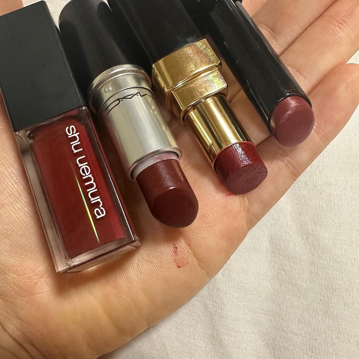 とろける滑らかなテクスチャーで艶感の強いリップスティック。存在感のあるレッド・ゴールドパール入りのやや青み寄り鮮やかなレッド。 やや深みがあり大人っぽく華やかな印象にブルべ冬にイチオシ♡