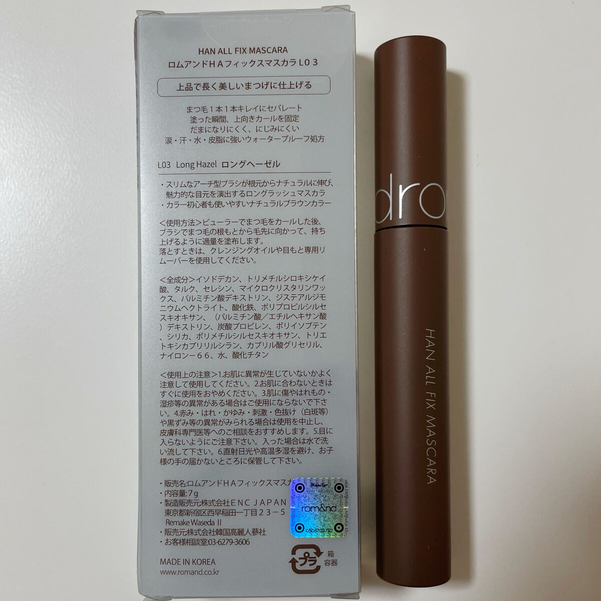 @#リピ買いコスメ🌷rom&ndロムアンド ハンオールフィックスマスカラ *L05LongVineロングヴァイン*上品で長く美しいまつげに仕上げる*まつ毛1本1本キレイにセパレート塗った瞬間上向きカール固定ダマになりにくくにじみにくい涙汗水皮...