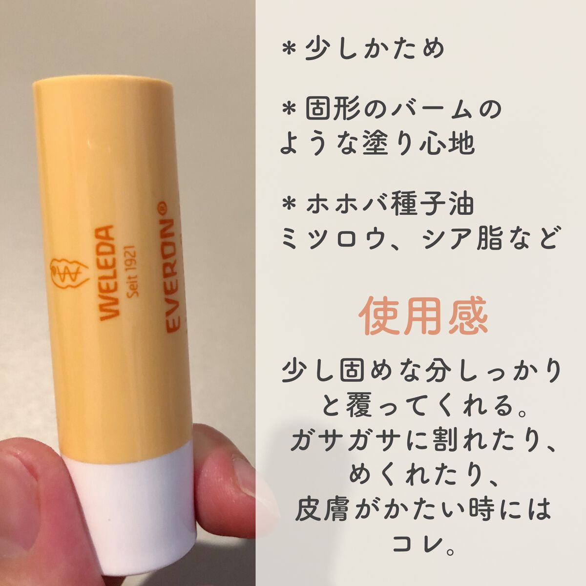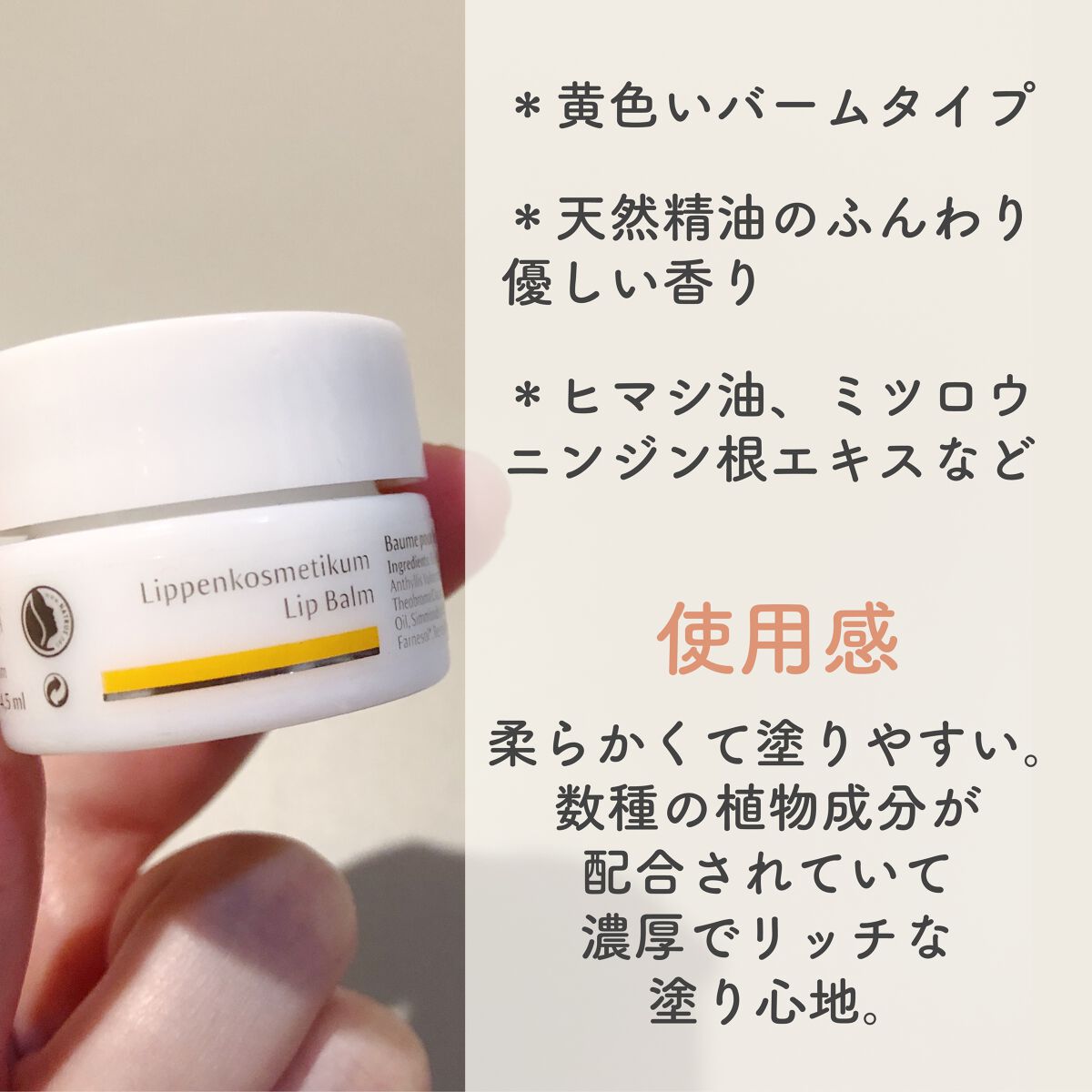 全製品が100%ナチュラルな天然由来成分 ☑︎全製品が合成・人工原料(香料・着色料・保存料・界面活性剤等)フリー ミツロウ配合で、他にもシアバターやアーモンドが入っていて、すごくなめらかなつけ心地でした✨ 乾燥した唇にうるおい🥰 これでこの冬は皮剥け回避したいーーーっ