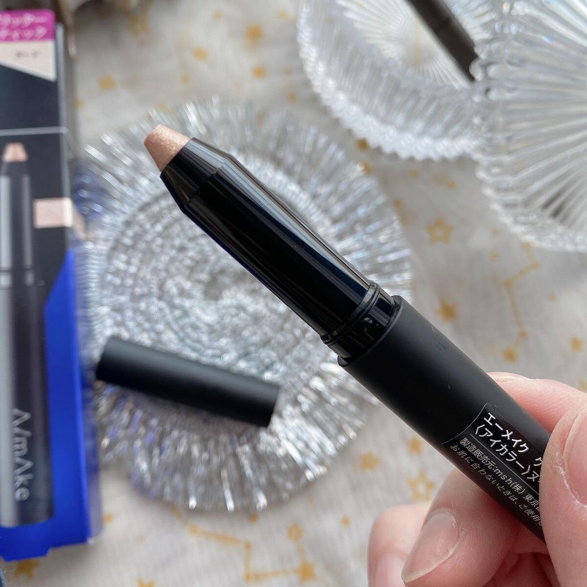 グリッタースティック想像以上に良かった!! スルスル塗れて涙袋に塗るとぷっくり。ゴシゴシ擦っても全く落ちなくてびっくり…!ラメも綺麗✨ リキッドアイライナーは透明感が出るグレージュカラー🩶筆もコシがあってアイライナー苦手な私でも描きやすかった!こちらも落ちにくい👏🏻 エーメイクはくれいじーまぐねっとの浅見めいさんプロデュースのブランドらしい👀しかも日本製。オススメです!