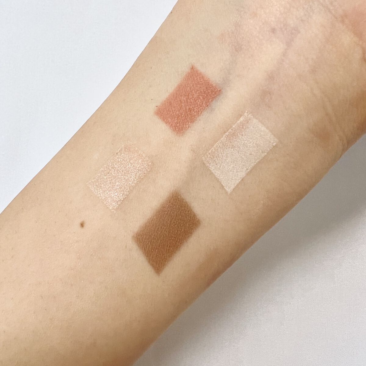 間違いなくお買い得。 何とも言えないこのきれいなグラデーションのカラーを少なくとも4色から5色位使えば、かなり目元にも奥行きが生まれそう。 しかもキラキラ型のラメが入ったアイシャドーが4色も付いているし、その他は結構マットな質感で組み合わせて使ってもかわいい。 ラメのところは大粒のラメタイプと、細かい粒子のラメタイプとそれぞれあるので、涙袋としても使えるし。普通のアイシャドーとしてラメ感を楽しみたい時にもグッド。 rom&ndのパレットシリーズは、他にもラメだらけのタイプや、マットタイプだらけのタイプ等々、いろんな種類があるのでこれは全色揃えたくなるのは何かわかる気がする笑 オフィス使いでも絶対に使える!!!お出かけにももちろん馴染むしラメがあるからパーティーでもイベントでも使えそう。家辺向きとかも書いてあったけど私的にはグリーンベースでもブルーベースでも使い方次第で全然使えると思う。 特に1番薄いベージュのスキンベージュ。ムードブラウン、ディープブラウニーはあっという間に、底見えしそう。笑