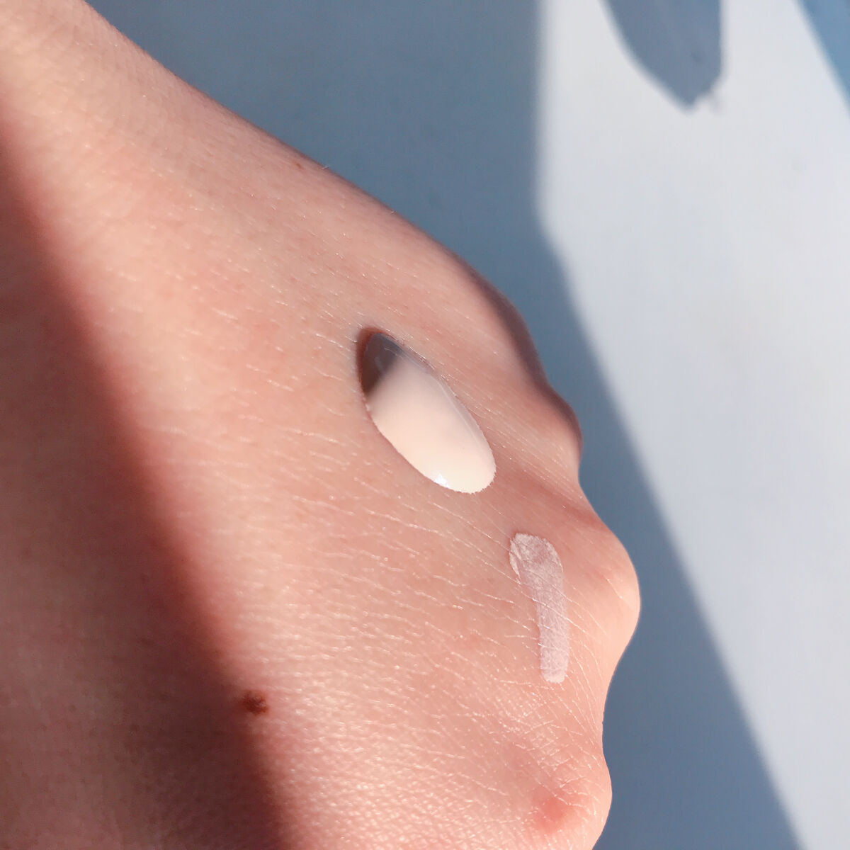 どちらも名品なので、プレゼントにもおすすめ🎁 肌にとると、①デコルテの方がピンクがかっています 伸ばしたときにも、②ポール&ジョーの方が肌が明るくなりました! ①デコルテの良いところは、SPF50+、PA++++なので、真夏でもこれ1本でしっかり紫外線対策ができるところ!
