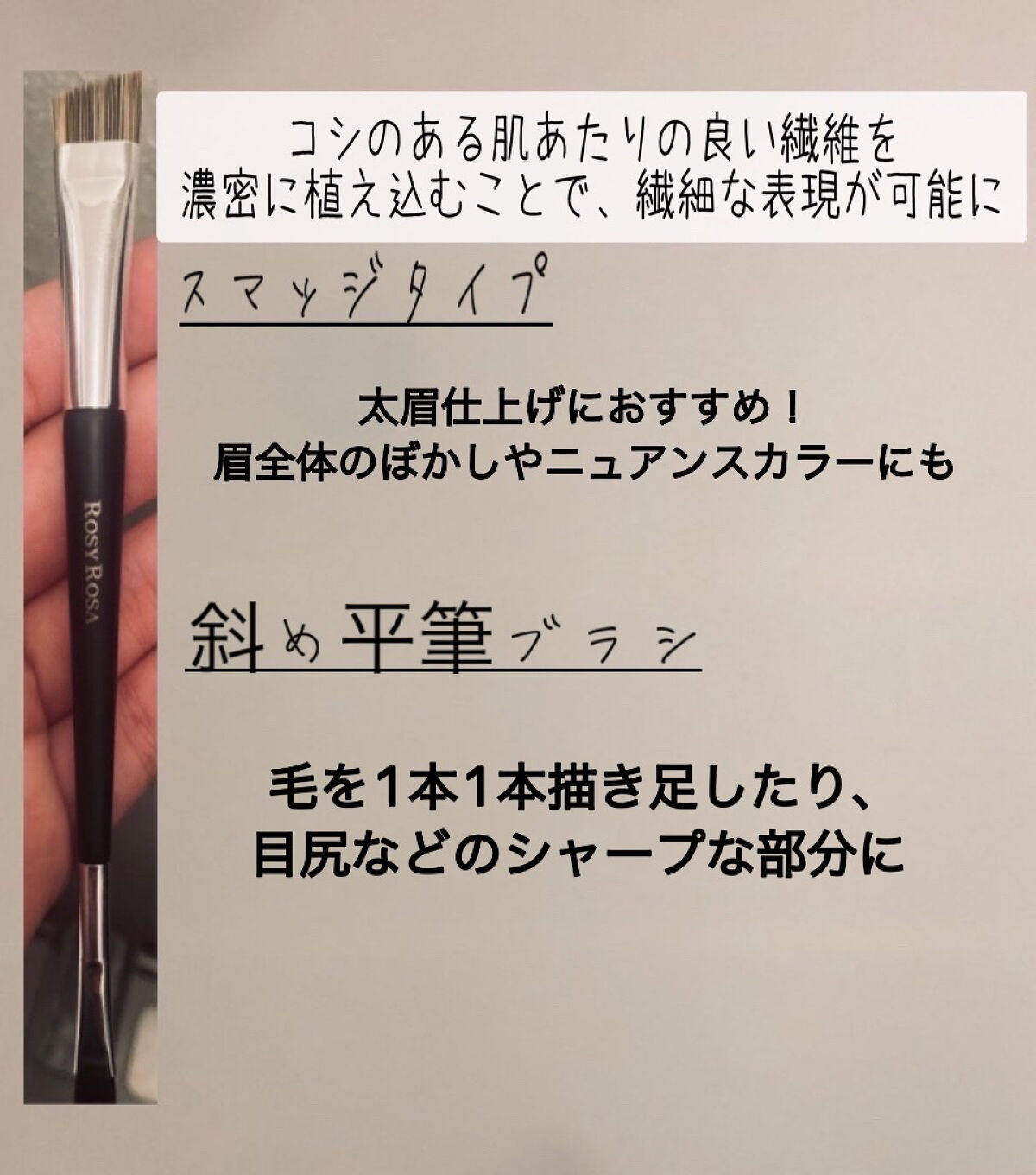 - 理想の眉毛を描くこだわりのブラシ形状ダブルエンドアイブロウブラシ。 スマッジタイプ:太眉仕上げにオススメ!眉全体のぼかしやニュアンスカラーにも。 斜め平筆ブラシ:毛を一本一本描き足したり、目尻などのシャープな部分に。
