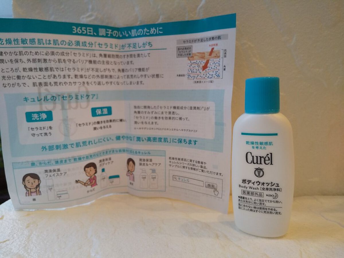 - 【敏感肌用】 肌にやさしい使い心地の低刺激性のボディウォッシュ。泡立ちもよく、きめ細やかな泡で肌への負担を抑えて洗えます。 「セラミドケア*」で外部刺激で肌荒れしにくい、健やかな潤いに満ちた肌に保ちます。 肌の必須成分「セラミド」を守りながら、肌荒れの原因ともなる汗や汚れをすっきり洗い流します。(マイルド洗浄処方) カサつく肌もしっとりなめらかに洗い上がります。(保湿成分配合) 肌荒れを防ぎます。消炎剤(有効成分)配合。 赤ちゃんのデリケートな肌にもお使いいただけます。 ○旅行やお出かけに便利なミニセット *肌の必須成分セラミドを守って洗い潤いを保つケア 商品に関するお問い合わせ 受付時間9:00~17:00(土曜・日曜・祝日除く) *製品の誤飲・誤食など緊急の場合は、受付時間外でもお電話ください キュレル:0120-165-698