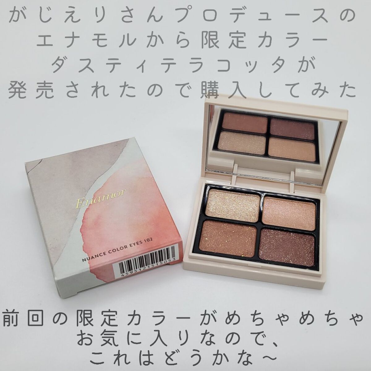 - 4つのニュアンスカラーをレイヤードし 自然な奥行きと輝きが楽しめるアイパレット。 Enamorニュアンスカラーアイズは 「攻めすぎず、媚びすぎない自分らしさ」をコンセプトに、 肌に馴染みやすくしっとりしているけれども さらっと軽くボカしやすいテクスチャーと カラー展開にこだわりました。 ニュアンスカラーをレイヤードすることで 自然な奥行きが演出でき、作り込みすぎない 自分らしいナチュラルな仕上がりにしてくれます。