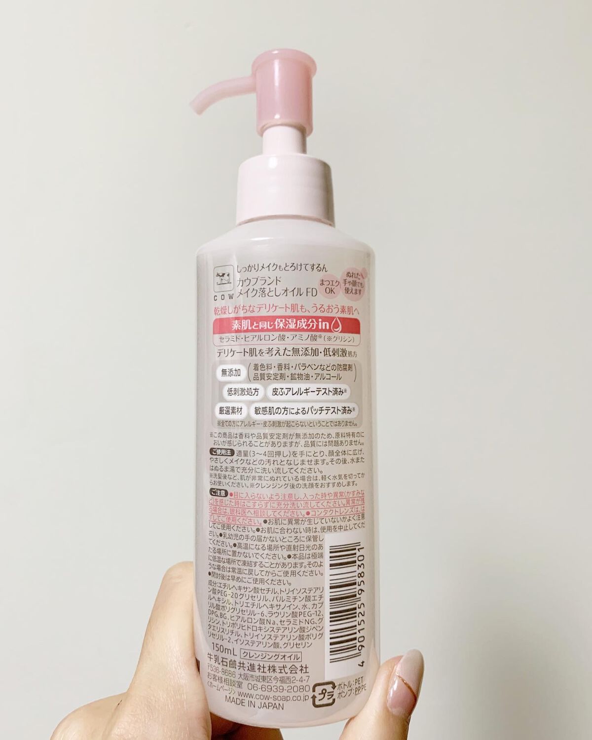 【カウブランド 無添加メイク落としオイル】 しっかりメイクも残さず落としてくれるクレンジングオイル❤️ こちら、軽くなじませるだけでメイク汚れを素早く浮き上がらせ、肌に余分な負担をかけず、しっかりメイクもとろけてするんと落としてくれる、というクレンジングオイル🎉💯✨. セラミド(保湿成分)配合なので乾燥でデリケートになりがちな肌のうるおいを守ってくれるし、 デリケート肌を考えた無添加・低刺激※処方なのも有難いポイント😂✌️. 使ってみると、肌馴染みの良いテクスチャーで、オイルなのにぬれた手や顔でも使えるところが何とも使いやすい!!👍👍👍. それにオイルなのですごくメイク落ちも良いのに、 それでいて肌への負担もケア出来るなら最高だなと思いました✨ #カウブランド #無添加 #メイク落としオイル #コスメ #ヘアケア #スキンケア #コスメ好きさんと繋がりたい #化粧品 #美容垢 #女子力向上委員会 #美容 #美容好きな人と繋がりたい #美意識向上 #makeup #cosmetics #skincare #japanesecosmetics #japaneseskincare #japan #japanesebrand ※着色料・香料・パラベンなどの防腐剤・品質安定剤・鉱物油・アルコール無添加。 厳選素材。低刺激処方。皮ふアレルギーテスト済み(全ての方にアレルギーが起こらないということではありません