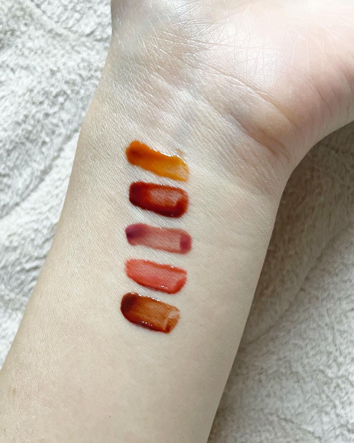 ネーミングがどれも美味しそうで可愛いリップティント💄 ツヤっと発色もばっちり、乾燥もせず、ぷるんっとした唇にしてくれます◎ 付けたての色が長持ちし、マスクへの色移りもしにくいです。
