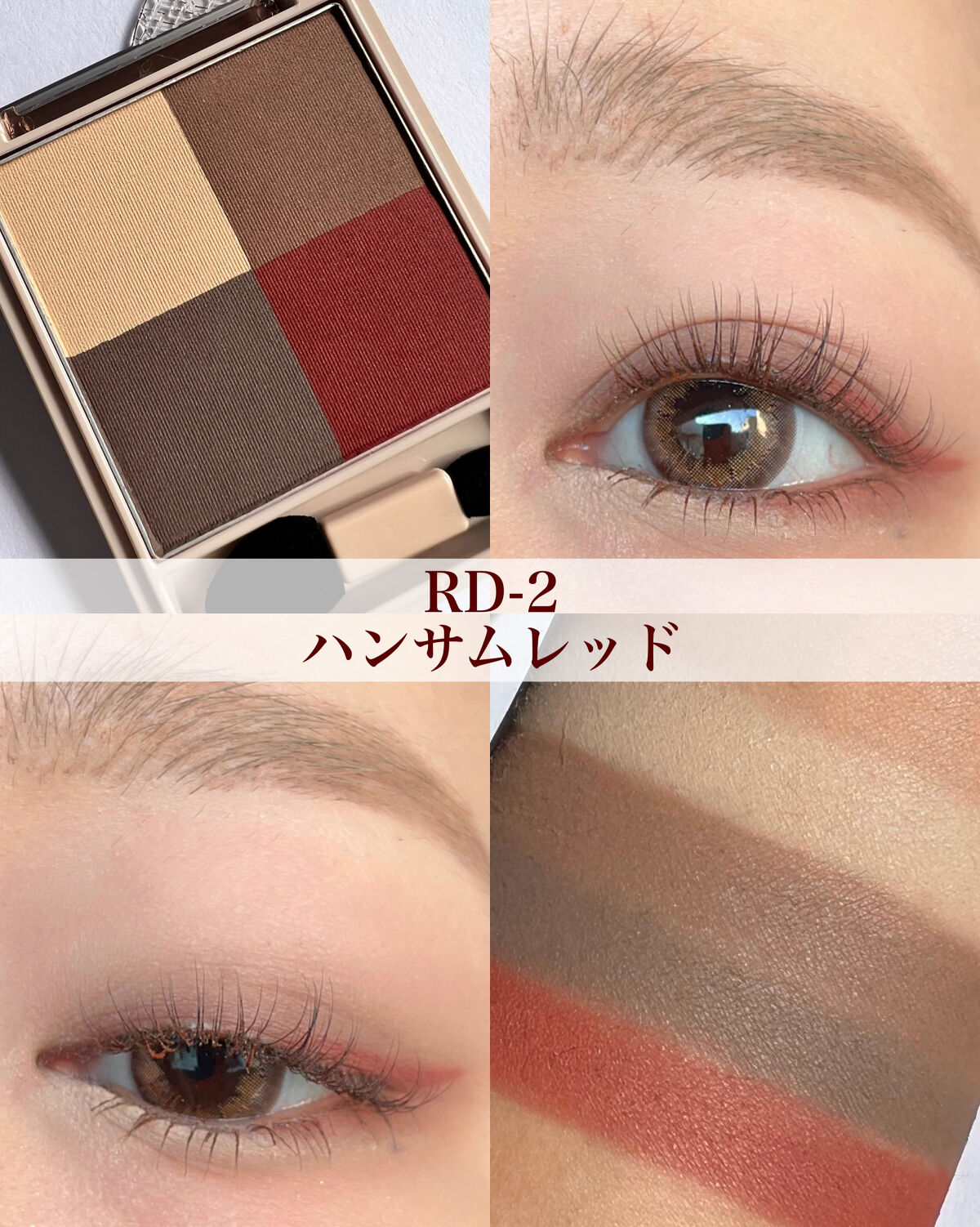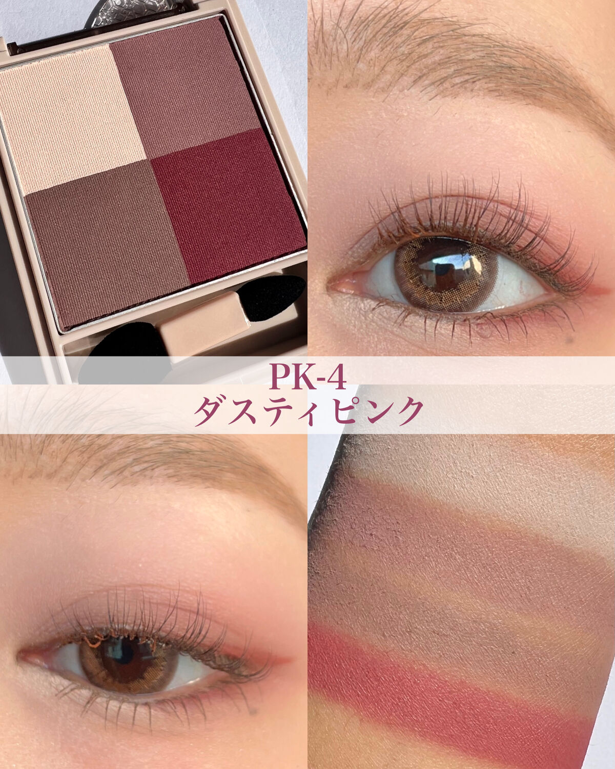 - マットな質感なのに、透け感のあるシアーな発色の4色セットアイカラーです。 美しいグラデーションで自然な立体感のある目もとへ導きます。 軽い感触で伸び広がり、肌に溶け込むように馴染むクリアパウダー(※1)を配合したことで、 ふんわりと透けるような発色でありながら、立体感のある目もとを叶えます。 4色のパレットのうち、左上には、重ねる色を美しく引き立てる「スキンリセットカラー」を配置。 ファンデーションのように、まぶたのくすみや色ムラを自然にカバーします。 (※1)窒化ホウ素