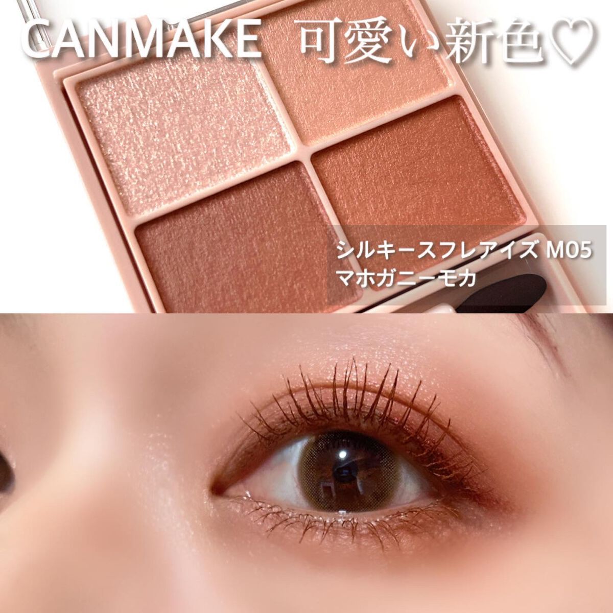 \\CANMAKEの秋色といったらコレ🙌//◎キャンメイクシルキースフレアイズ(マットタイプ)M05マホガニーモカ ¥825少しずつ気温が下がってくるとやっぱり使いたくなるよね、これ🙌温かみのある赤みブラウン&透けカラー3色マットに1色ラ...