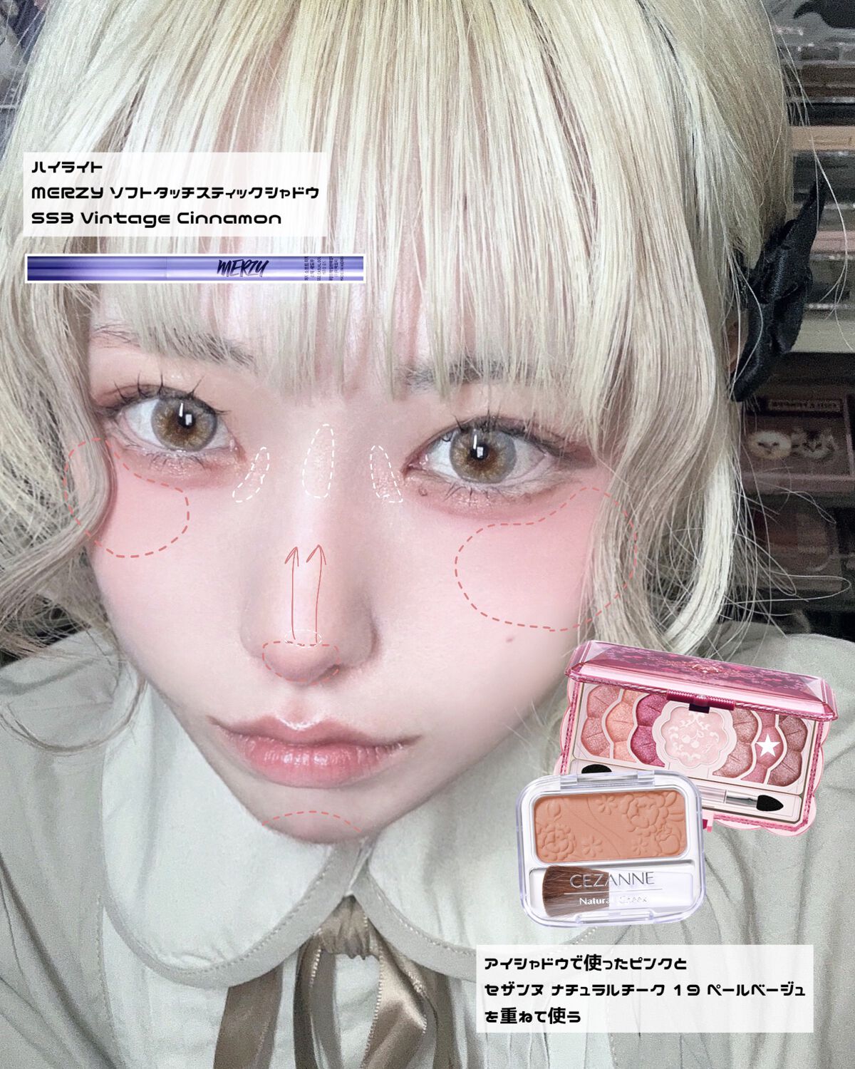 めちゃ可愛いです!! ちょうどミッドナイトチェリーどう使うか悩んでいたのでやってみます!!😍 セザンヌのチークは、ペールベージュとジンジャーどっちでしょうか?🤔